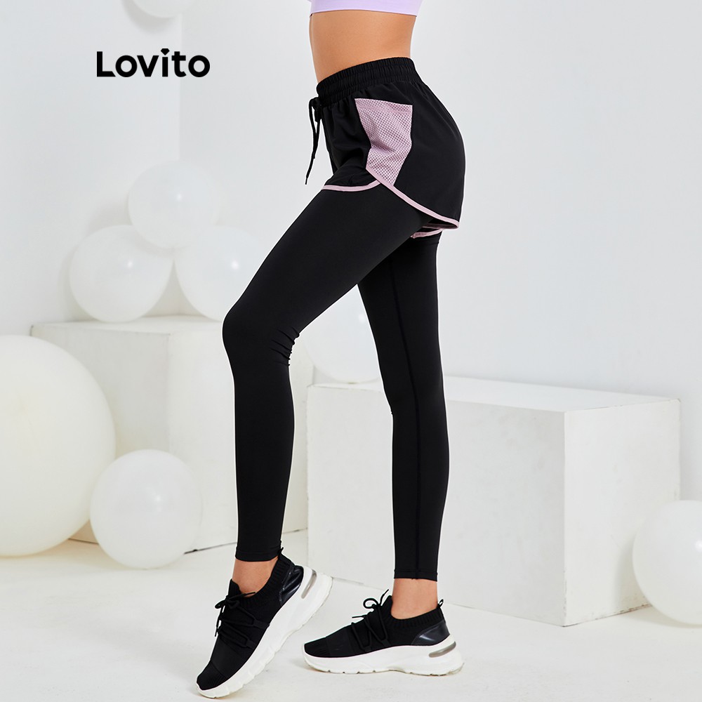 Lovito Quần Yoga thể thao cạp cao kiểu cơ bản l02044 (Xanh nhạt/hồng/đen/xanh đậm/Xám/Xanh lá/Tím)