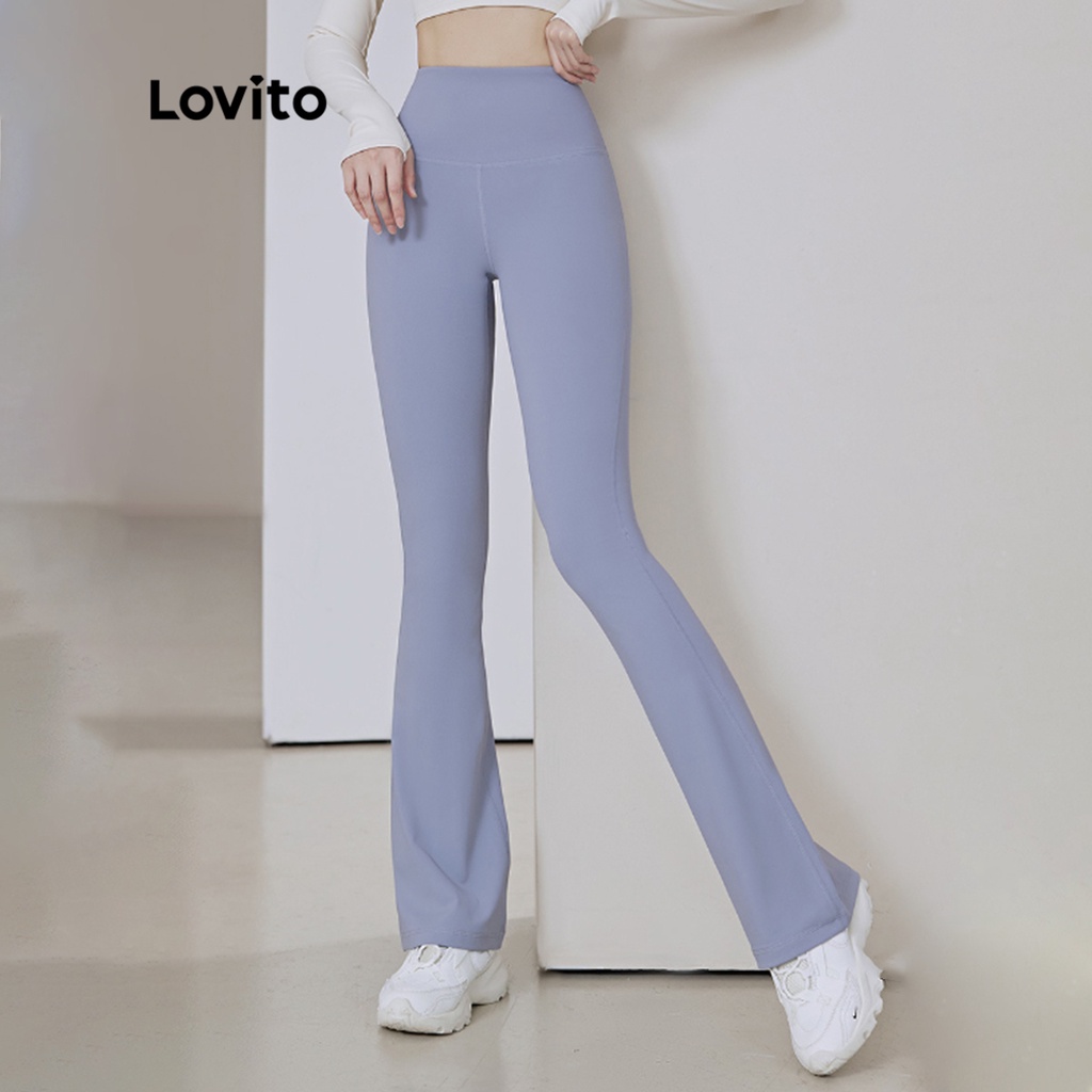Lovito Quần Yoga thể thao cạp cao kiểu cơ bản l02044 (Xanh nhạt/hồng/đen/xanh đậm/Xám/Xanh lá/Tím)