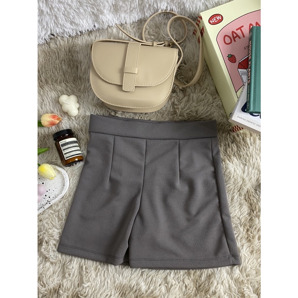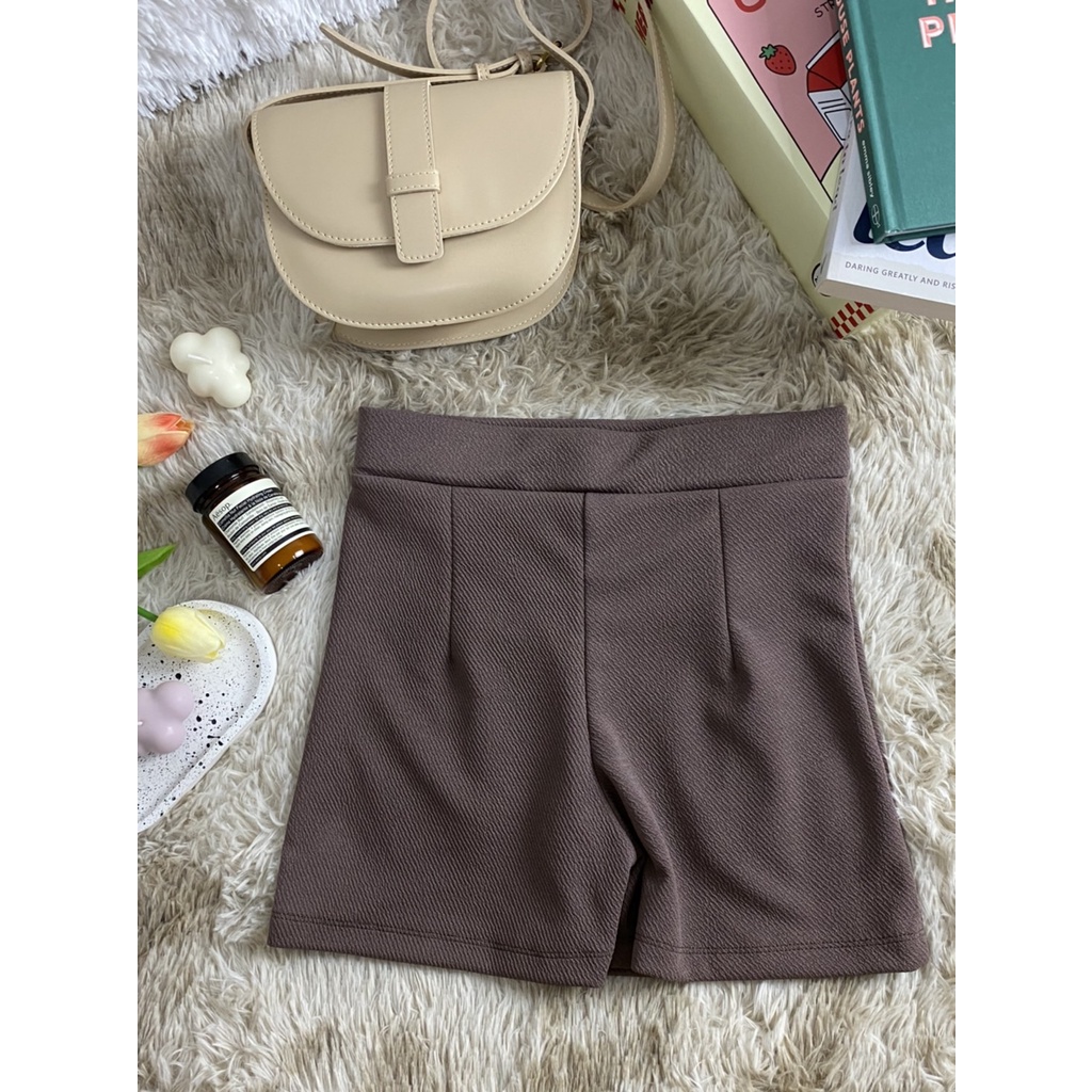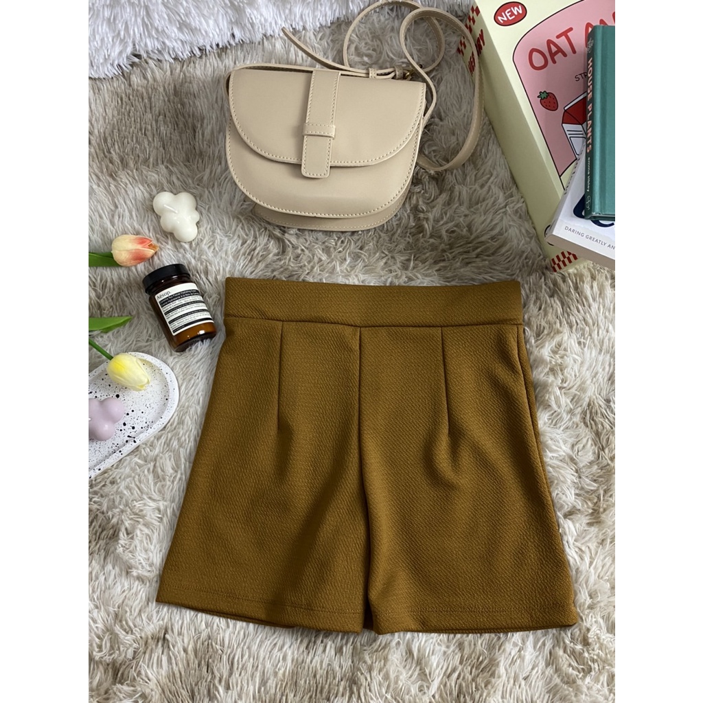 กางเกงขาสั้นเอวสูง มีขอบเอว ตีเกร็ดหน้า กางเกงแฟชั่นเกาหลี