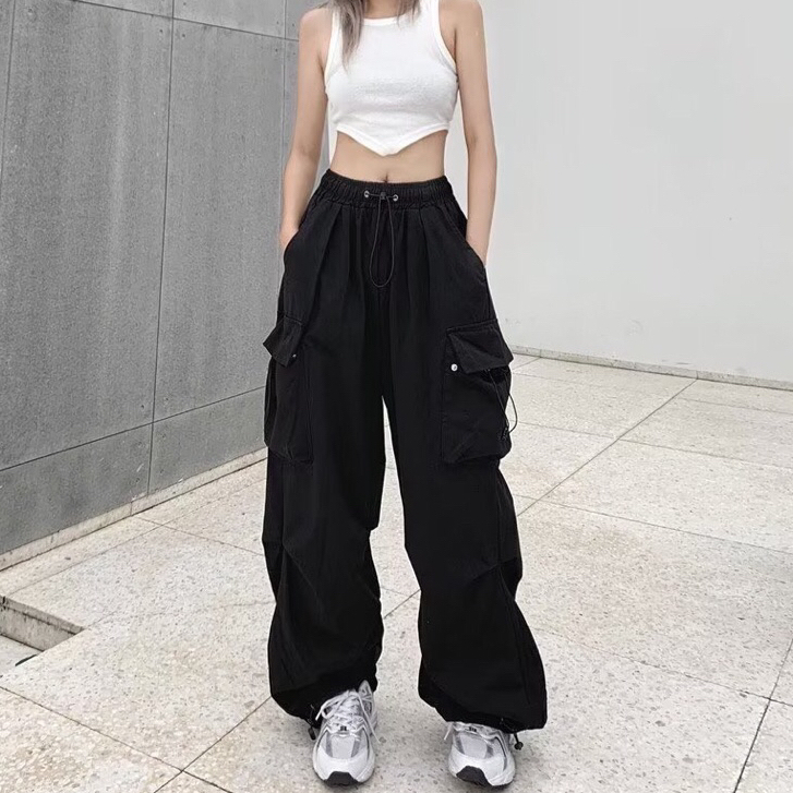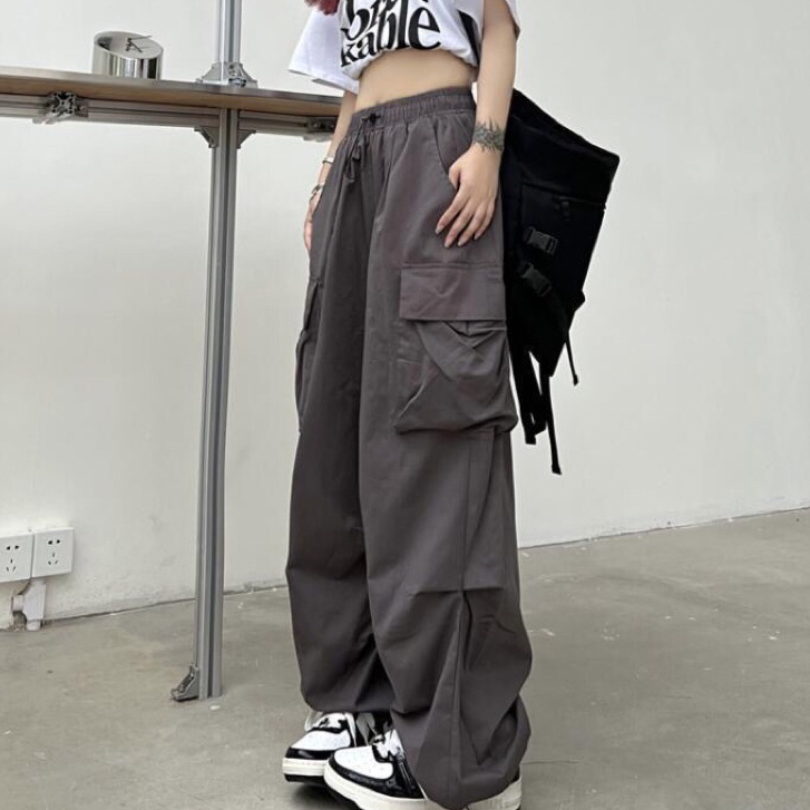 🔥🔥G39🔥🔥Quần ống rộng có túi khóa kéo hai hàng khuy phù hợp với S-7XL cỡ bé gái