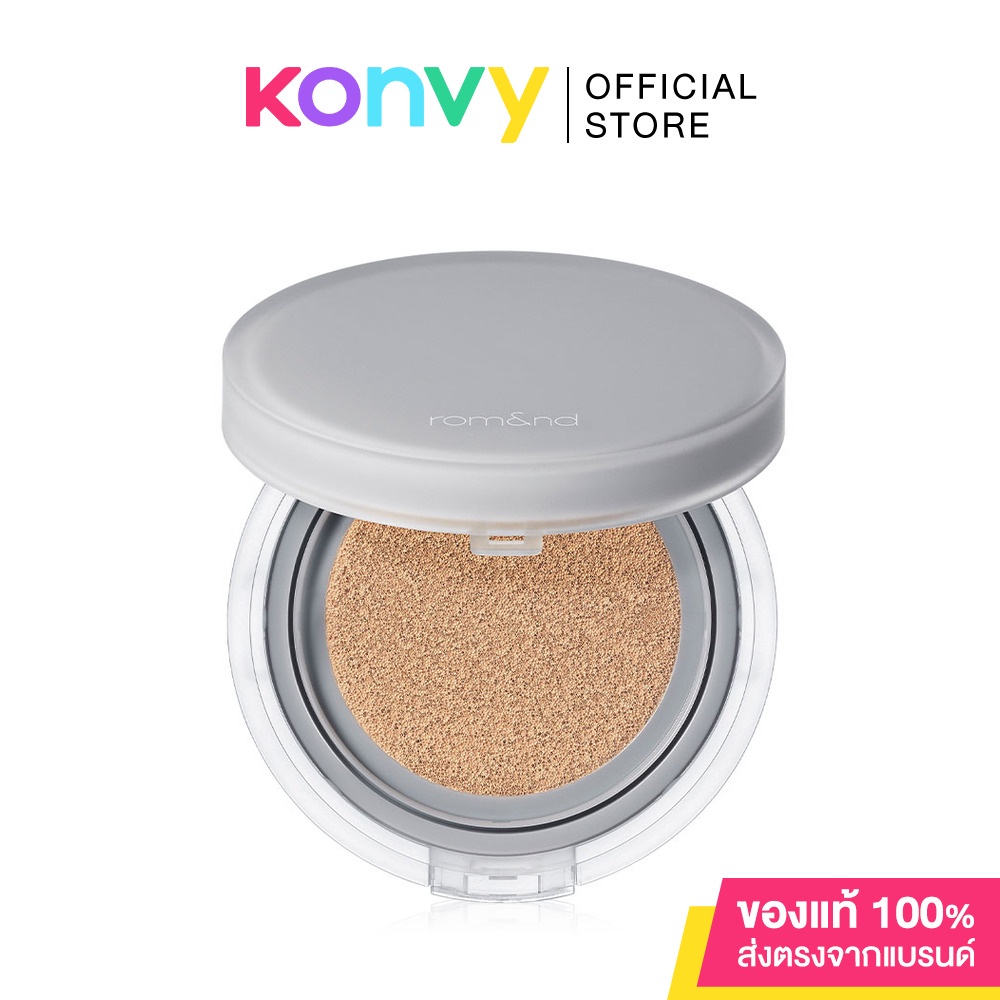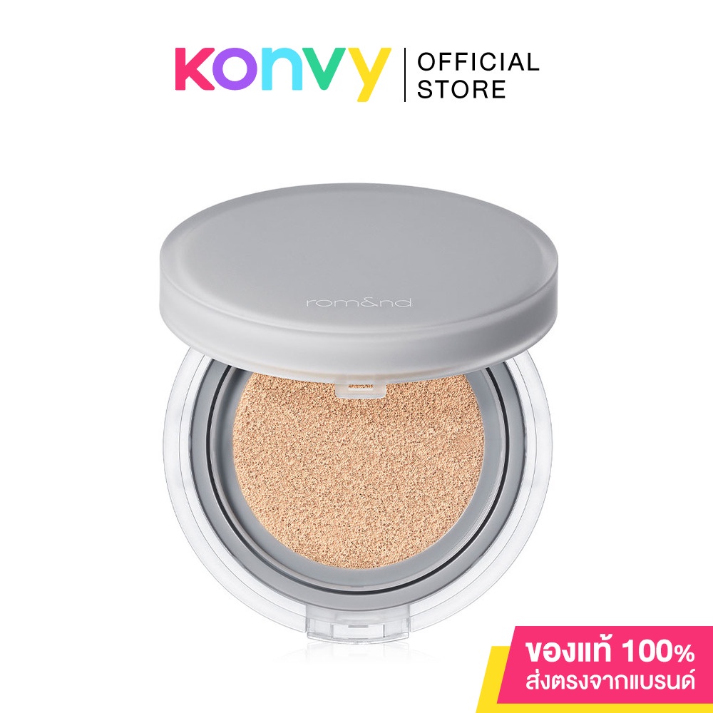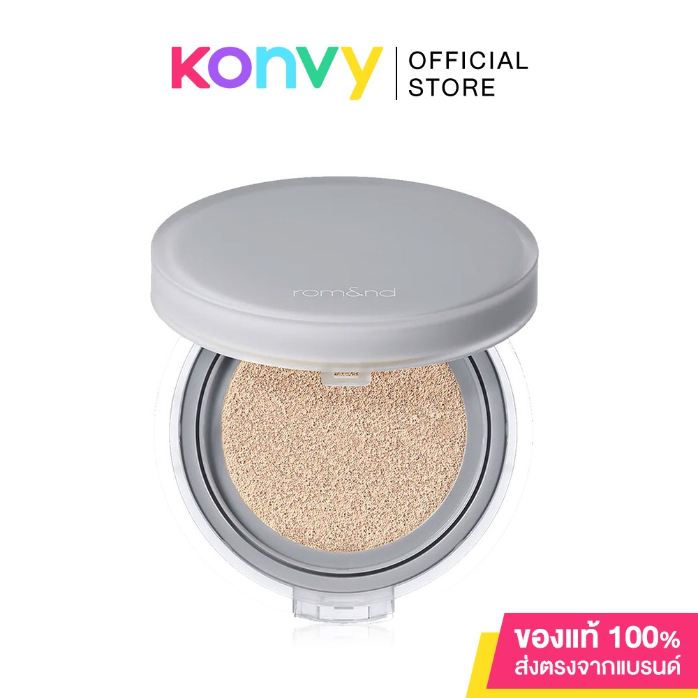 Cr.facebook.com/romand.thROM&ND Nu Zero Cushion 15g คุชชั่นเนื้อกึ่งแมท บางเบา สบายผิว ให้ผิวเรียบเนียนอย่างเป็นธรรมชาติ ติดทนนนานตลอดวัน ด้วยไมโครพาวเดอร์และไฮยาลูรอนิค แอซิดที่จะทำให้ผิวเรียบเนียนและชุ่มชื้น