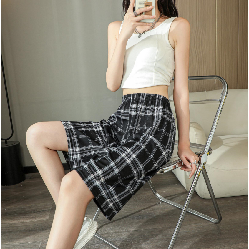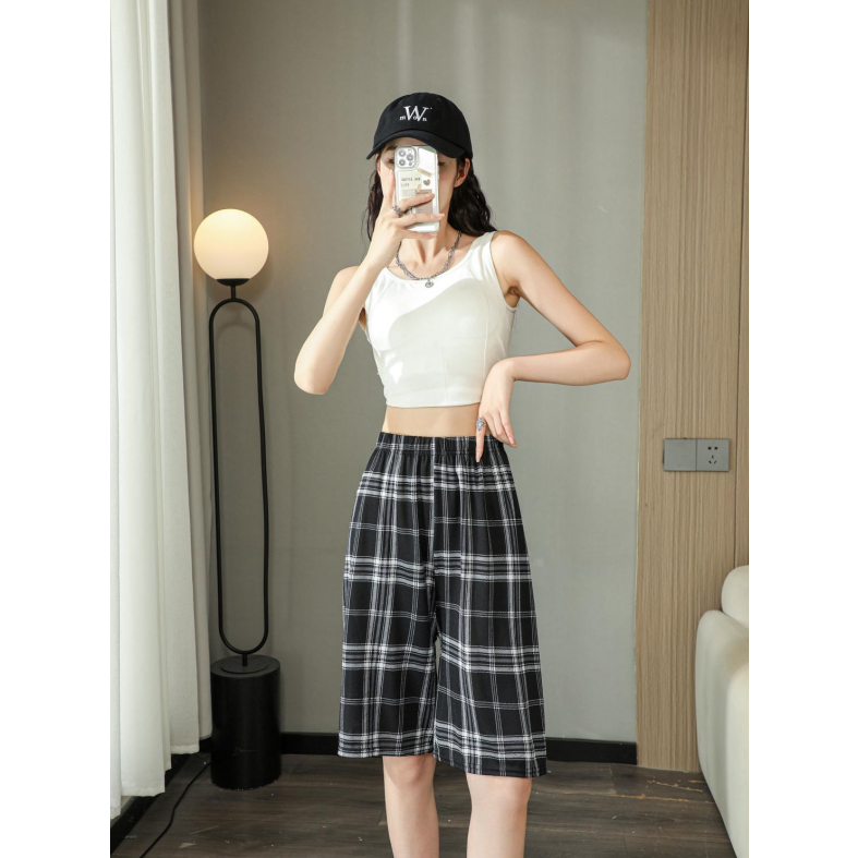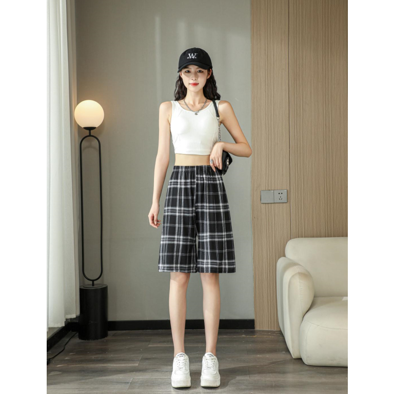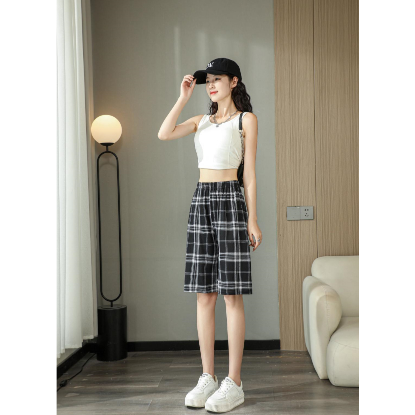 S-088 Quần Short Nữ thường ngày có dây buộc cạp cao ống rộng dáng rộng ngoại cỡ tập thể dục