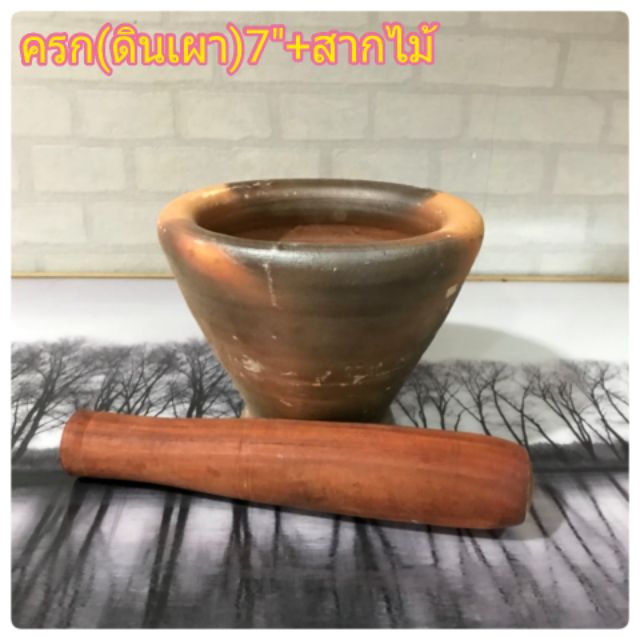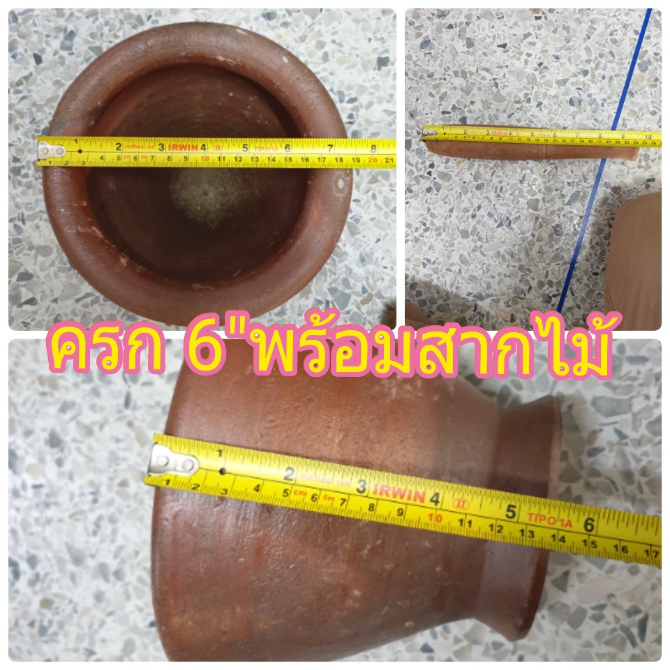 ครกส้มตำ 7 " 9" + สากไม้ ครกดินเผา ราคาประหยัด ใช้งานง่าย- ขนาด 7" คือ สูง 6" กว้าง 7" + สากไม้ ยาว 9"
