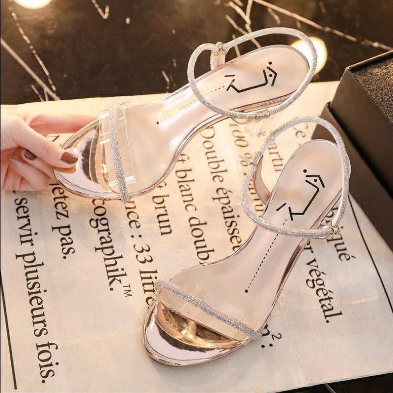 Xăng đan nữ cao gót giày không lau nhà thoải mái thiết kế pha lê trong suốt phong cách Hàn Quốc