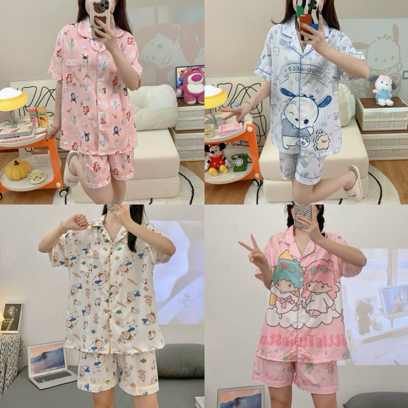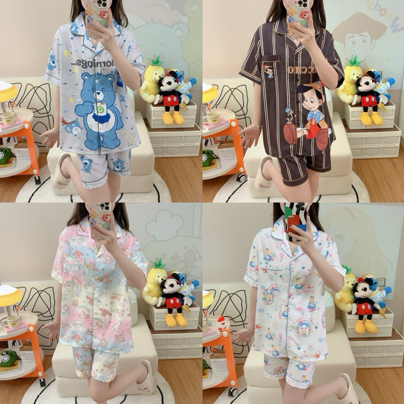 🎀Sẵn sàng giao đồ ngủ lụa ý ngắn tay đồ ngủ lụa ý dài tay hoạt hình rất mềm