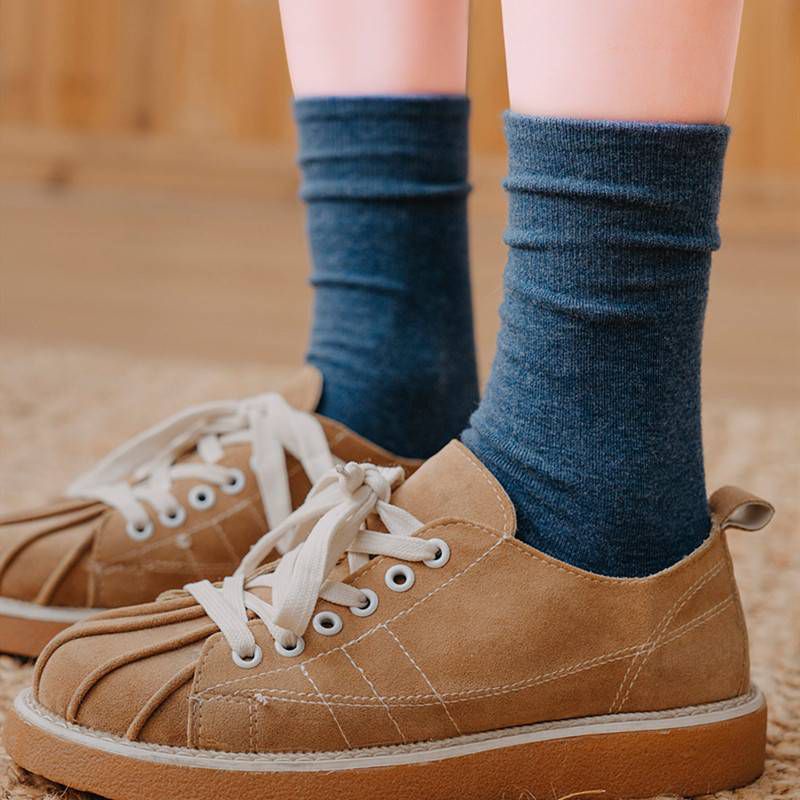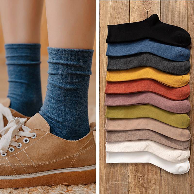 Vận chuyển từ Thái Lan!! Tất lửng cổ điển phong cách Nhật Bản Tất thời trang thoải mái màu trơn bằng cotton A05