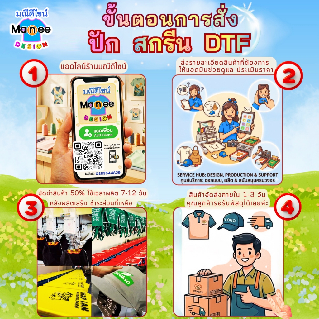 เพราะงานสกรีน, ปัก, DTF จะใช้เวลาจัดเตรียมมากกว่าสินค้าเปล่าค่ะ