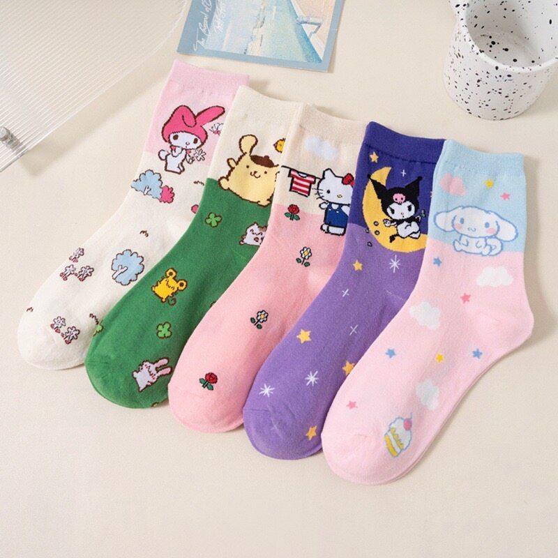 Sẵn sàng giao hàng: 5 đôi tất tối giản, thời trang ngắn, hoa văn dễ thương, kết cấu mềm mại