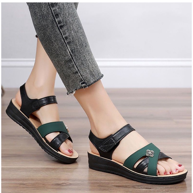 Xăng đan đế bằng thường ngày phong cách Hàn Quốc cho nữ xăng đan thời trang đi biển ngoài trời thoải mái Chất liệu mềm
