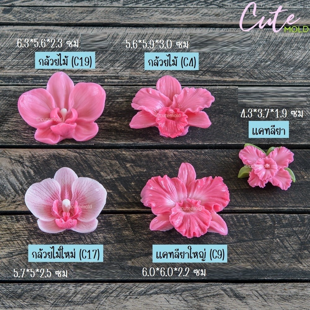 ฟองดองกล้วยไม้ มี 5 แบบ เลือกตามแบบได้เลยขนาด ที่แจ้งจะเป็นขนาดของขนม วัดโดยประมาณ
