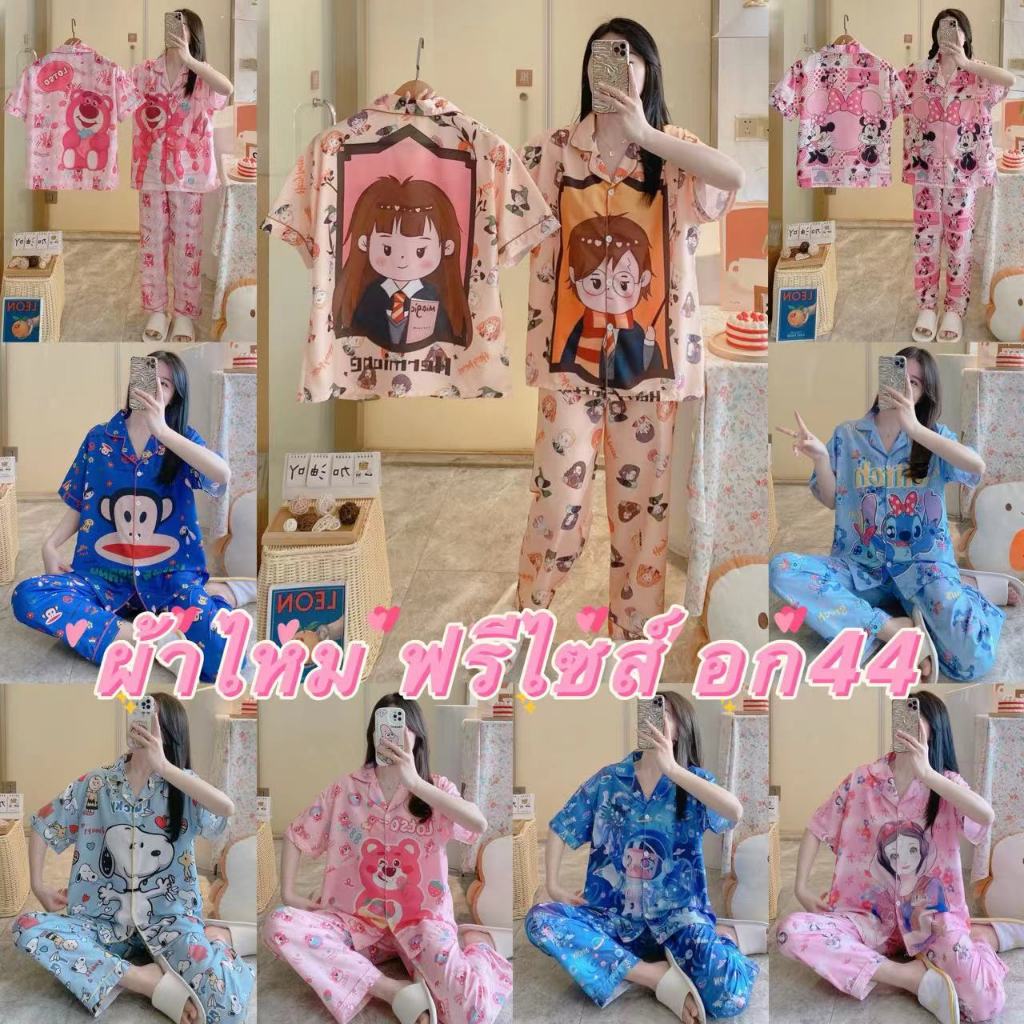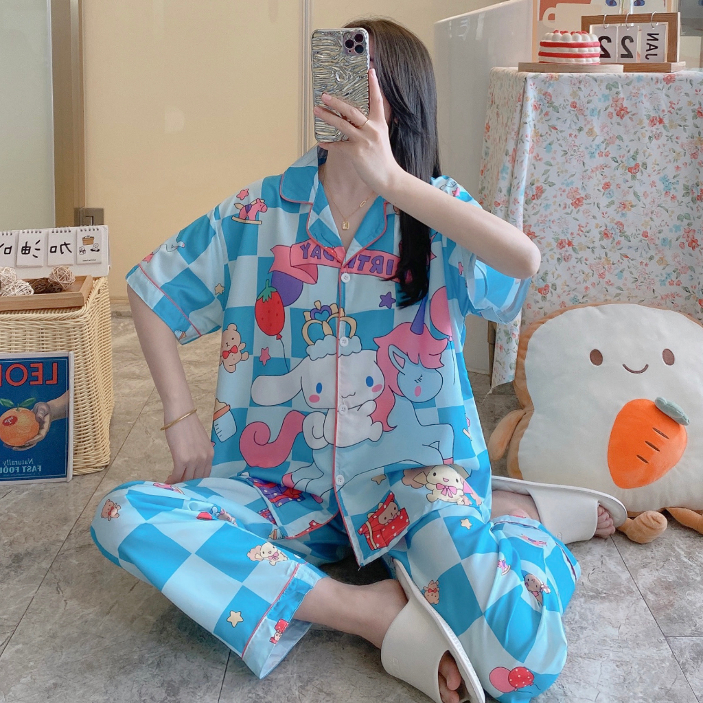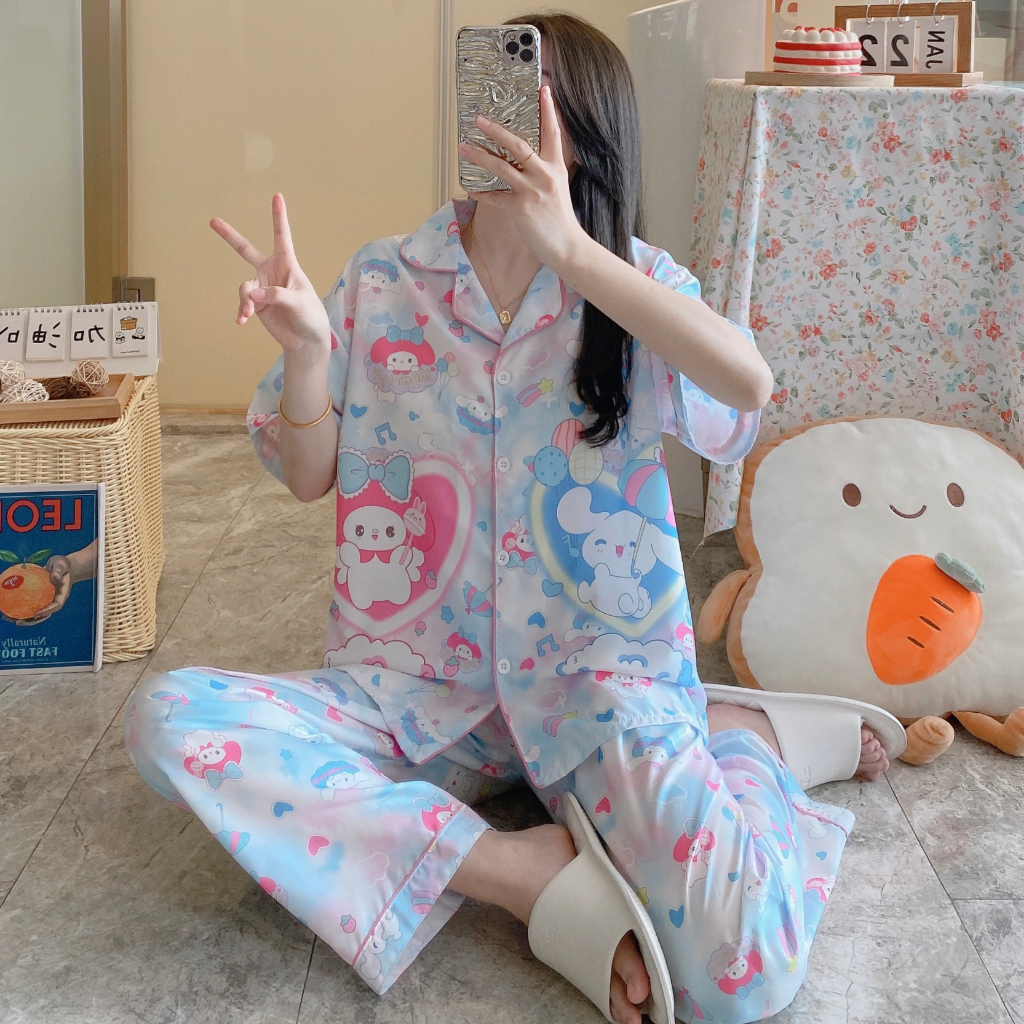 Áo ngủ lụa ý cỡ lớn đồ ngủ lụa mỏng tay dài hoạt hình ngắn tay mặc thường ngày
