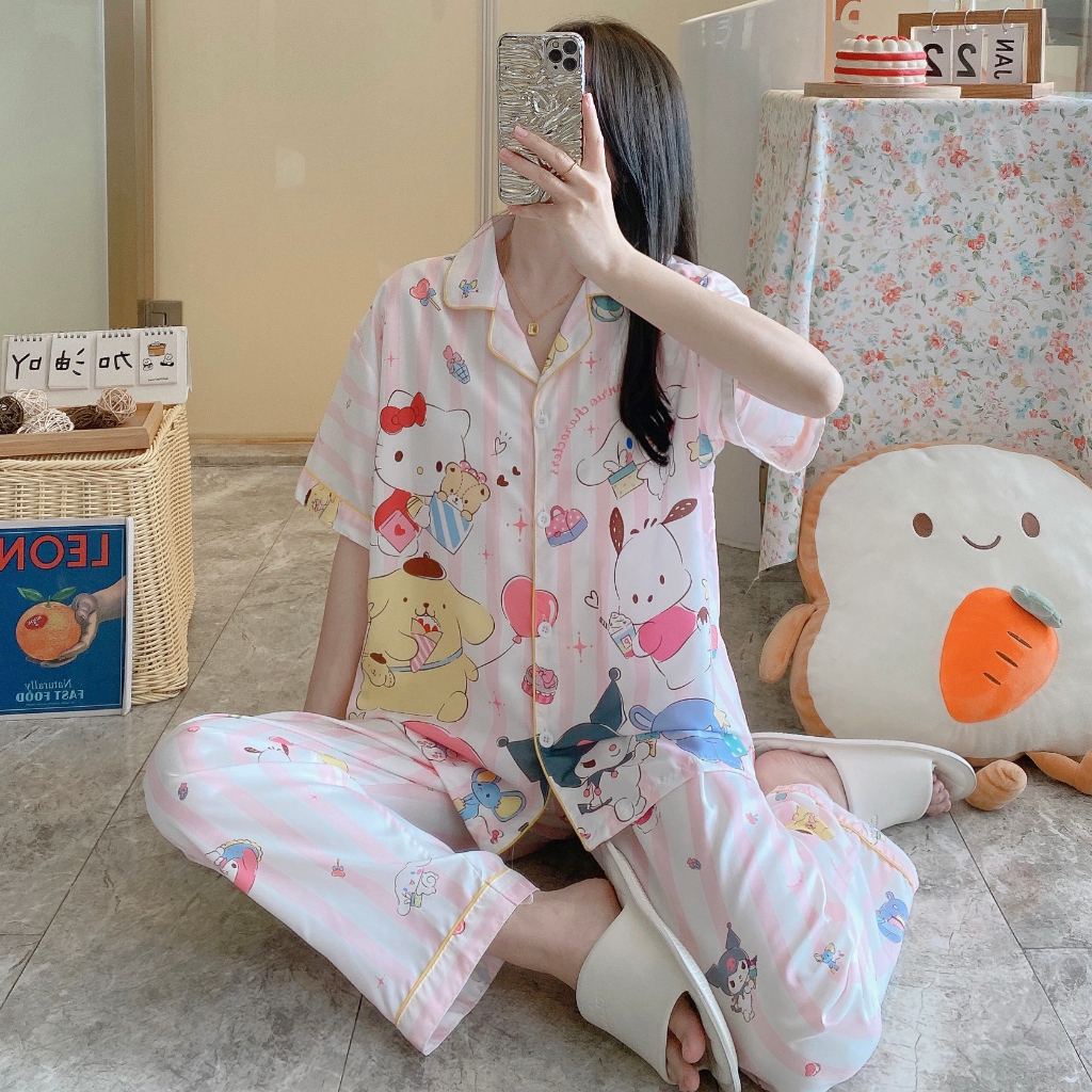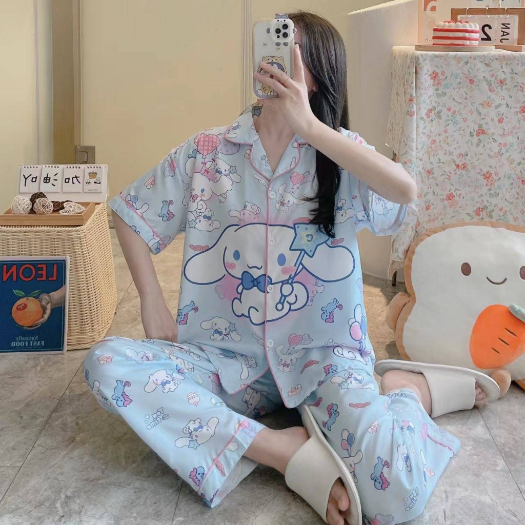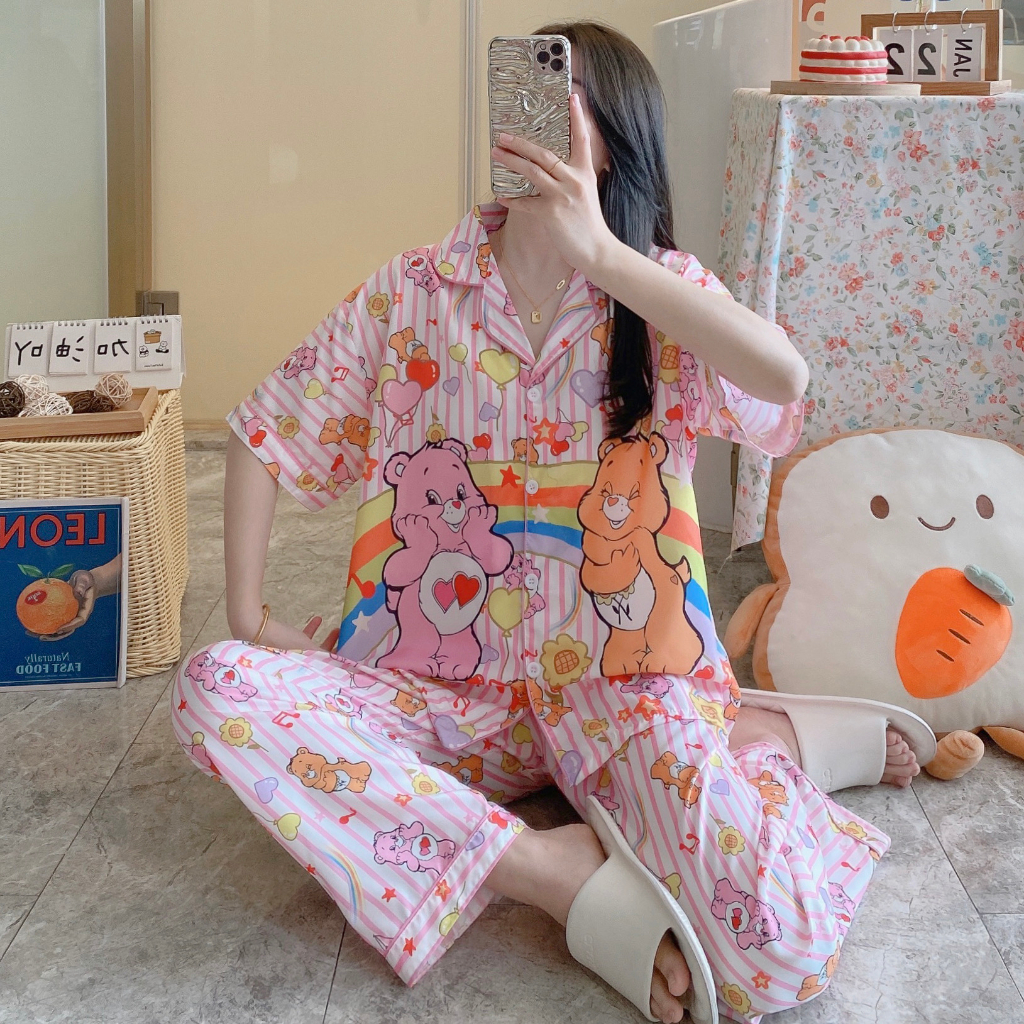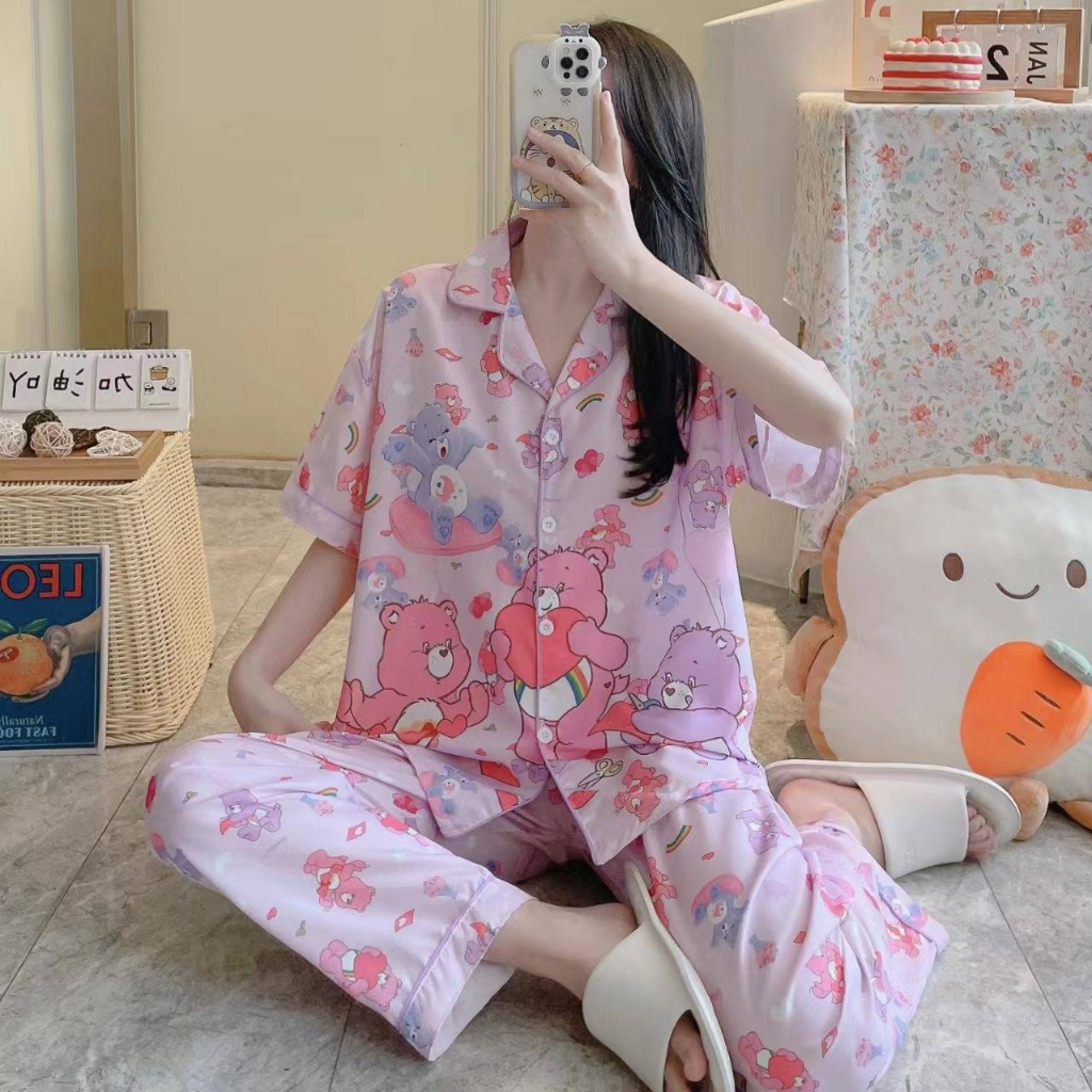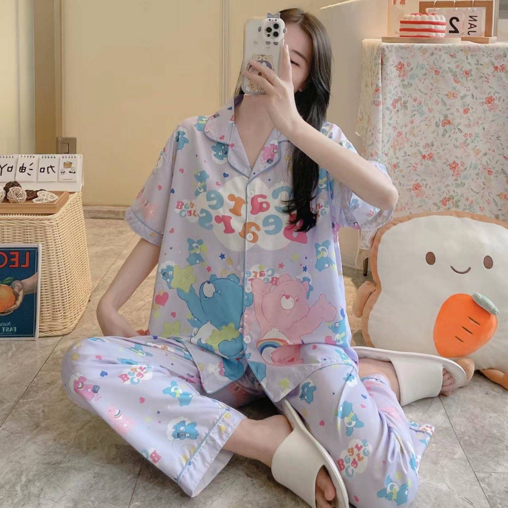 Bộ đồ ngủ bộ đồ ngủ cotton ngắn tay hoạt hình Bộ đồ ngủ hoạt hình Đồ ngủ nữ