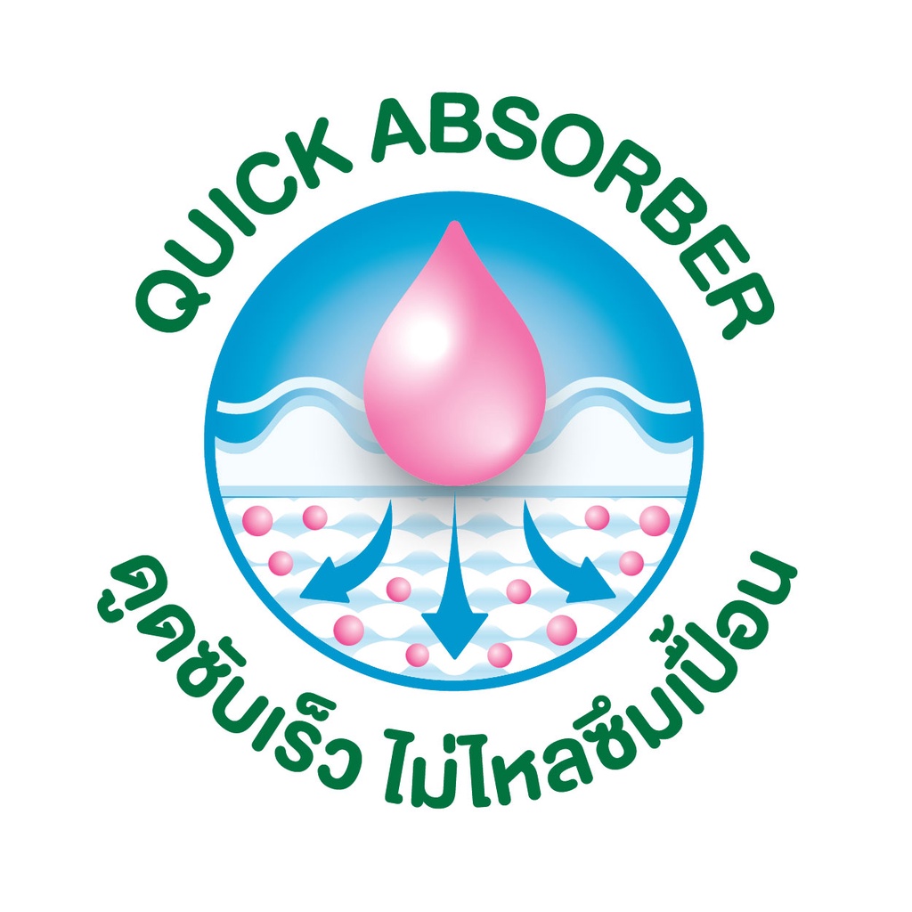 - ใช้แผ่นซึมซับแอร์ดราย บางเฉียบแต่ซึมซับได้ดี และเก็บล็อคความเปียกชื้นไว้ภายใน
