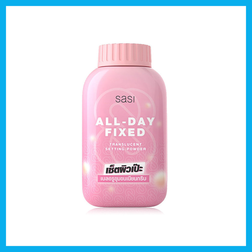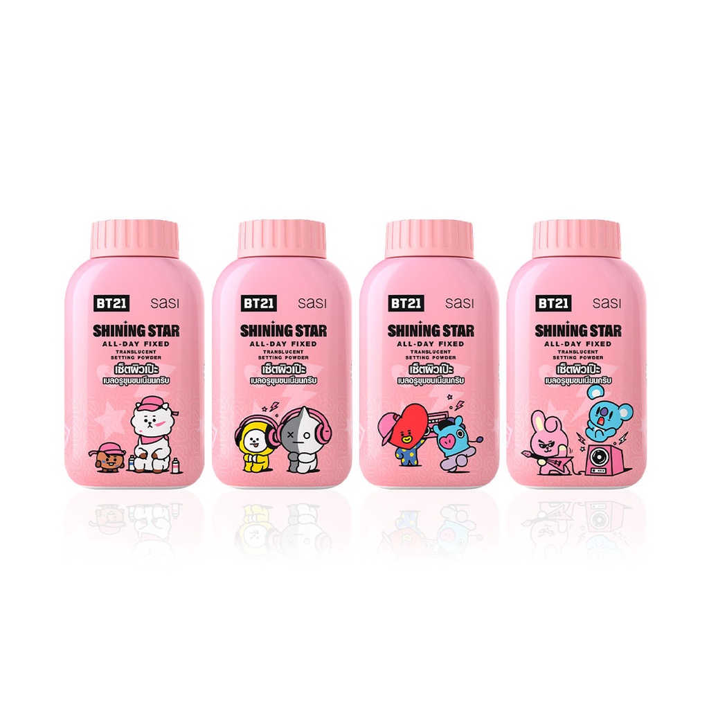 SASI All-Day Fixed Translucent Setting Powder 50gแป้งฝุ่นโปร่งแสง คอลเลกชั่น BT21 สุดคิ้วท์ เนื้อเนียนละเอียด ช่วยเบลอรูขุมขน ให้ผิวหน้าดูเนียนสวยอย่างเป็นธรรมชาติ เหมาะสำหรับเซทรองพื้นหรือคุชชั่นเป็นขั้นตอนสุดท้าย ช่วยให้เครื่องสำอางติดทนนาน ไม่ทำให้สีของเครื่องสำอางเปลี่ยน เหมาะกับทุกโทนสีผิว ช่วยควบคุมความมันยาวนาน 12 ชั่วโมง มั่นใจได้ในทุกๆ กิจกรรม ด้วยคุณสมบัติการกันน้ำกันเหงื่อ พร้อมด้วยคุณค่าการช่วยบำรุงผิวให้ชุ่มชื่นจากส่วนผสมของ Camellia Japonica Seed Oil และ Aloe Vera Oil•ช่วยเบลอรูขุมขน ให้ผิวดูเนียนสวยอย่างเป็นธรรมชาติ