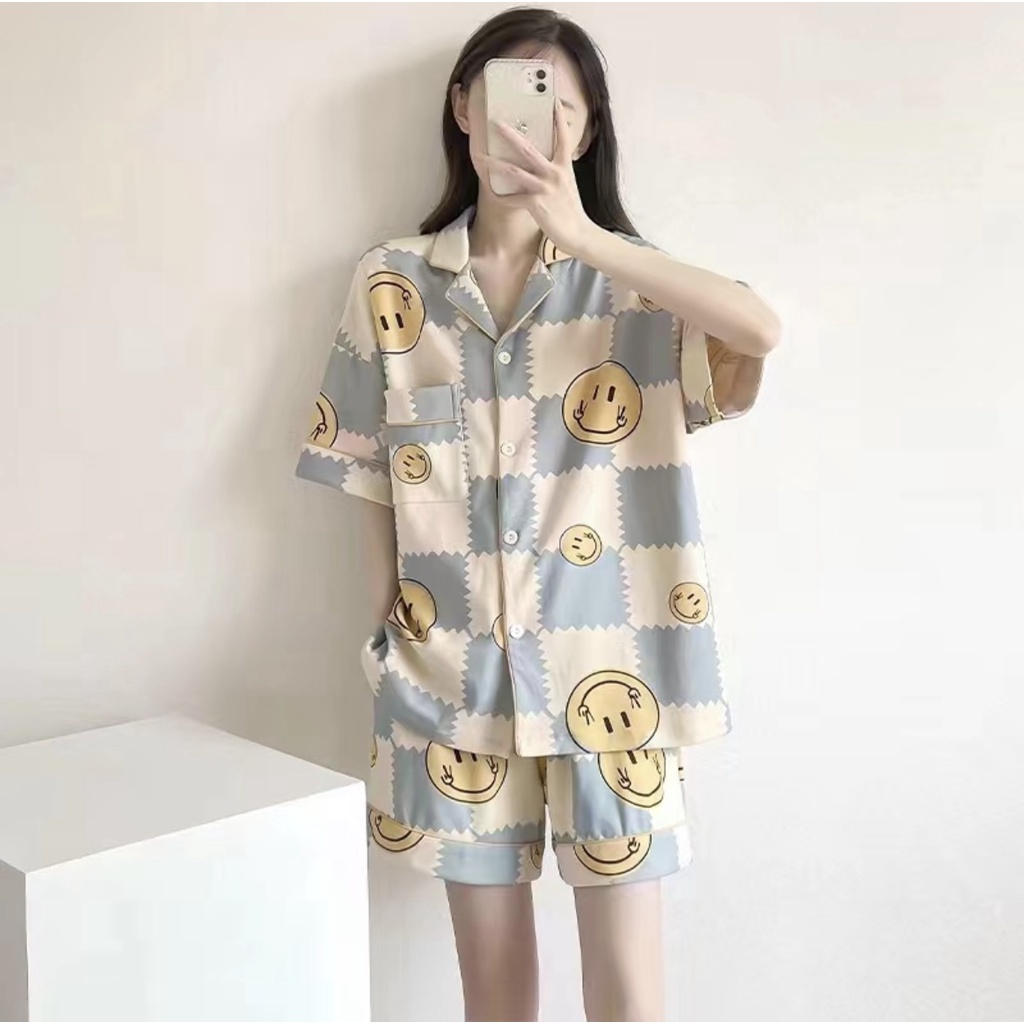 Alinda _ _ _ Shop ** Bộ Đồ Ngủ Tay Ngắn ** Mới-SSS-1 ngắn tay bằng lụa tan cỡ lớn 52 vải mềm thoải mái nảy lên