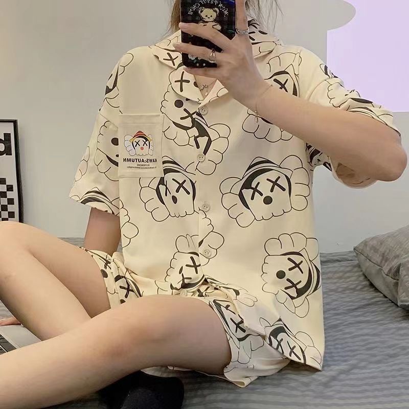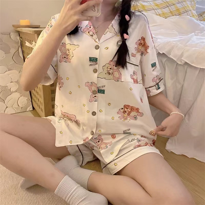 Bộ đồ ngủ bộ đồ ngủ cotton ngắn tay hoạt hình Bộ đồ ngủ hoạt hình Đồ ngủ nữ