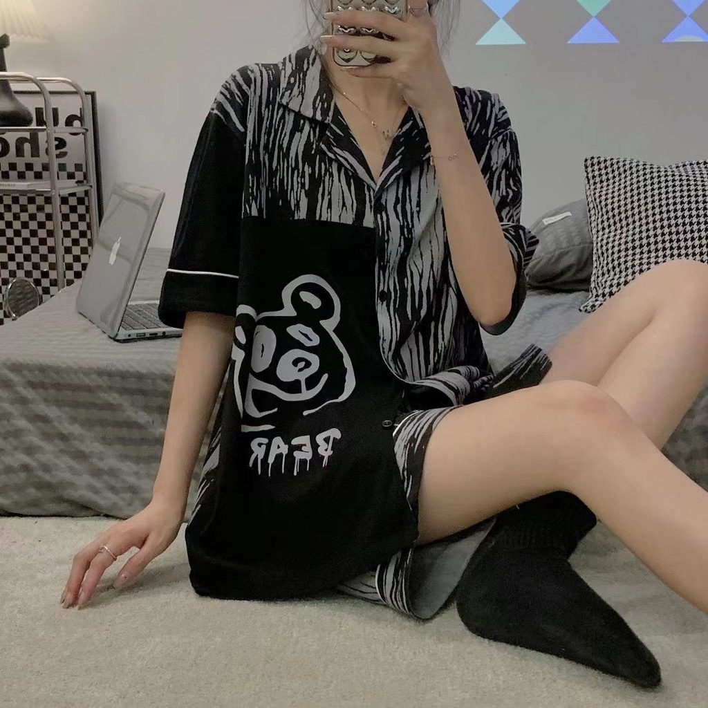 Áo ngủ lụa ý cỡ lớn đồ ngủ lụa mỏng tay dài hoạt hình ngắn tay mặc thường ngày