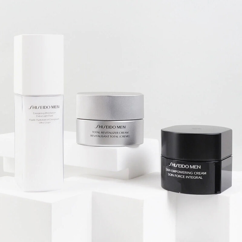 Shiseido MEN Energizing Moisturizer Extra Light Fluid 100ml มอยส์เจอร์ไรเซอร์สูตรบางเบาเนื้อสัมผัสแบบ Aqua Gel ซึมซาบเข้าสู่ผิวได้เร็ว ไม่รู้สึกเหนียวเหนอะหนะ อ่อนโยนใช้ได้แม้ผิวแพ้ง่าย ผสานสารสกัดจากคามีเลียญี่ปุ่นช่วยฟื้นบำรุงให้ผิวดูสดใสมีชีวิตชีวาและกักเก็บความชุ่มชื้นให้กับผิวยาวนาน 32 ชั่วโมง พร้อมทั้งช่วยลดเลือนริ้วรอย ความหมองคล้ำและความแห้งกร้านให้ผิวแลดูสุขภาพดี สามารถนำผลิตภัณฑ์มาใช้เป็นอายส์ ครีมได้ มอบความรู้สึกถึงความชุ่มชื้นและความรู้สึกผ่อนคลายระหว่างใช้ผลิตภัณฑ์ อีกทั้งช่วยให้ผิวดูเรียบเนียน ริ้วรอยบางๆ บริเวณแก้มและผิวรอบดวงตาดูจางลง• สูตรบางเบาเนื้อสัมผัสแบบ Aqua Gel ซึมซาบเร็ว ไม่เหนียวเหนอะหนะ