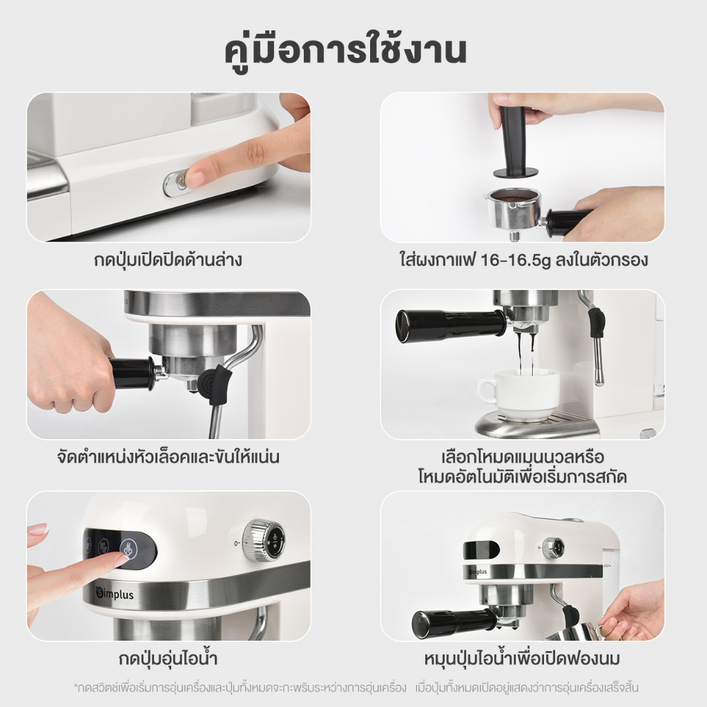 6. ดีไซน์หน้าจอสัมผัส: ทำฟองนมด้วยตัวเอง / อัตโนมัติ / ไอน้ำ