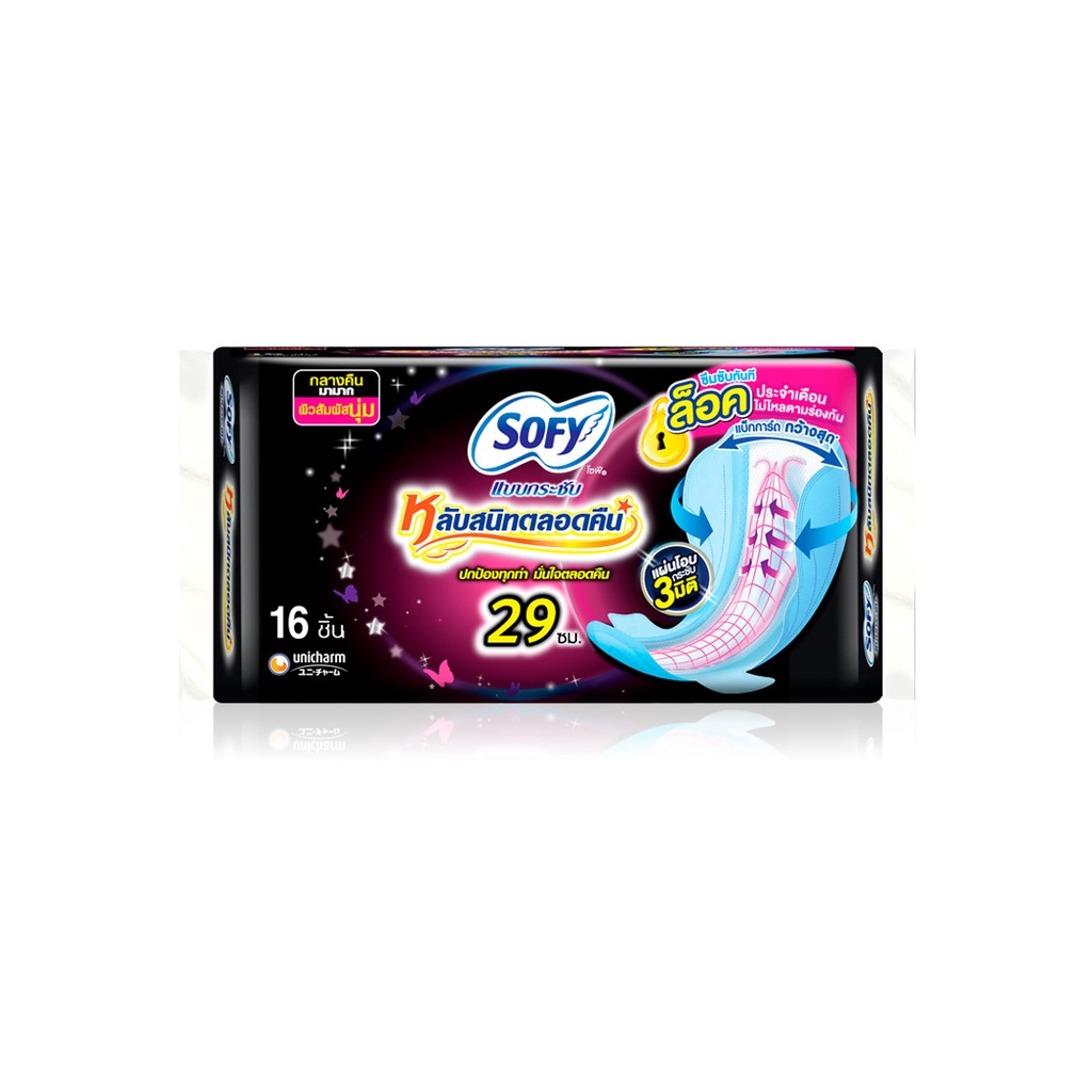 Sofy ผ้าอนามัย Body Fit Night [29cm x 16pcs]ผ้าอนามัยสำหรับกลางคืนแบบกระชับ หลับสนิทตลอดคืนด้วยความพิเศษ 29 ซม. ปกป้องทุกท่า มั่นใจตลอดคืนด้วยนวัตกรรม "แผ่นโอบกระชับ 3 มิติ" ปรับเข้ากับสรีระ แนบสนิททุกสัดส่วน ช่วยล็อคประจำเดือนไม่ให้ไหลไปตามร่องก้น ป้องกันการซึมเปื้อนด้านหลัง แม้พลิกตัวตลอดคืน ผิวสัมผัสนุ่ม พร้อมรูซึมซับกว้างทั่วแผ่น ซึมซับทันที ให้คุณรู้สึกมั่นใจ หลับสนิทได้แม้ในคืนที่มามาก