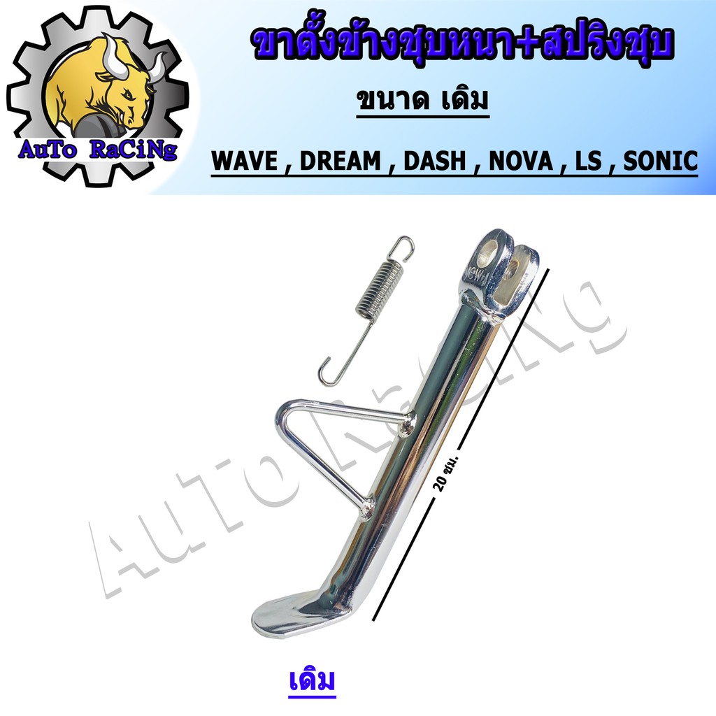 -ขาตั้งข้างชุบเงา แบบหนาพิเศษ มาพร้อมสปริงชุบเงา-สามารถใส่ได้กับรถรุ่น WAVE ,DREAM ,SONIC ,LS ,NOVA ,TENA ,NICE