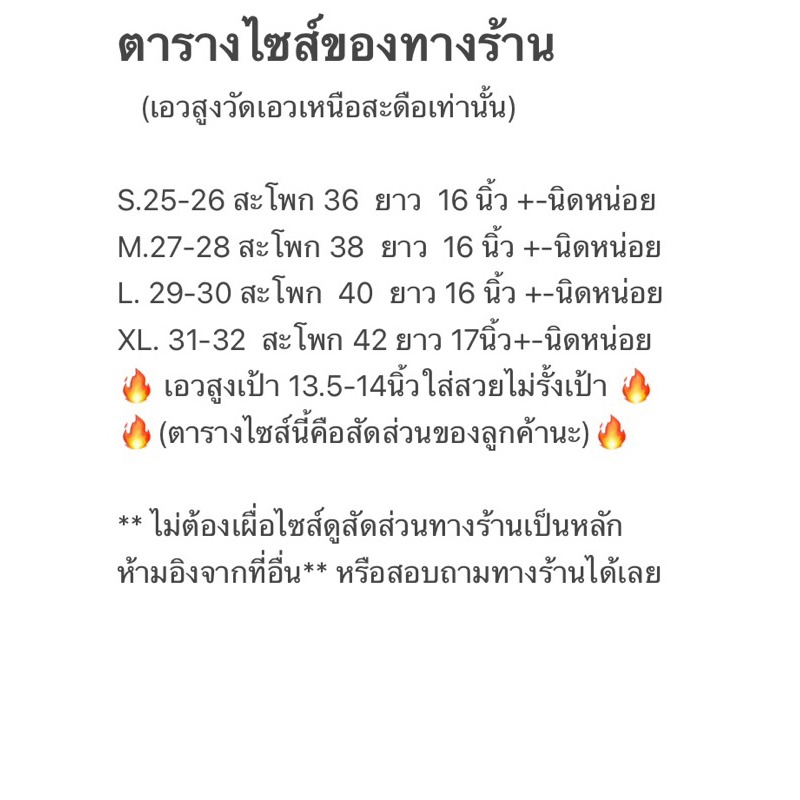 **อิงไซส์ร้านเป็นหลักนะค่ะ อย่าอิงไซส์ที่เคยใส่**