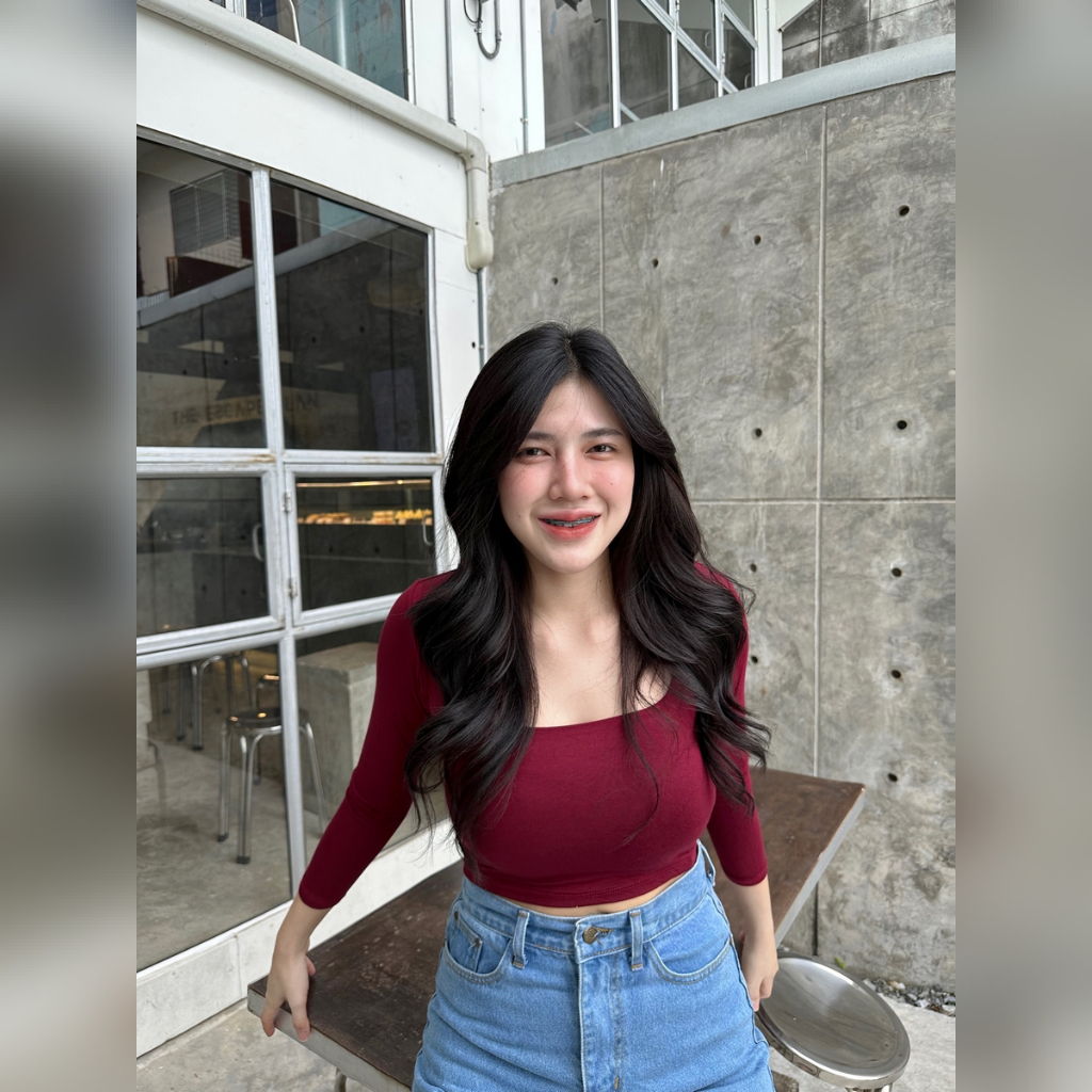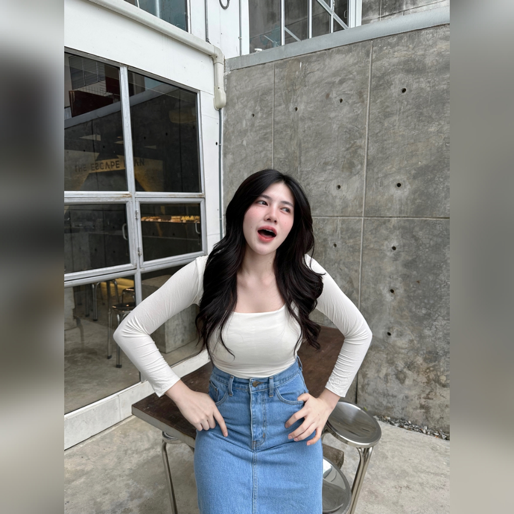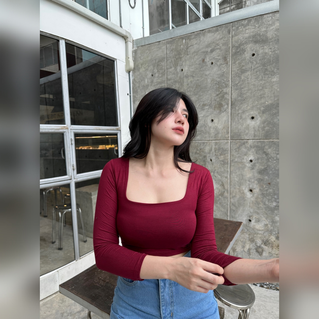 "ครอปแขนยาว เสื้ื้อคอเหลี่ยม เสื้อคอเหลี่ยม ✨ ผ้าเรย่อน2ชั้น สาวอวบใส่ได้ ยืดได้เยอะม้าก ผ้ายืดตามตัว เสื้อครอปแขนยาว รุ่น sq1รุ่น 🌂 191