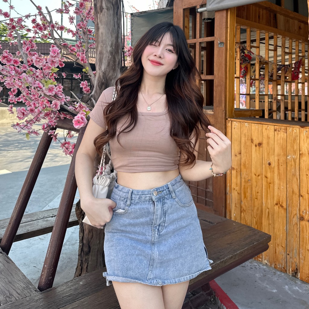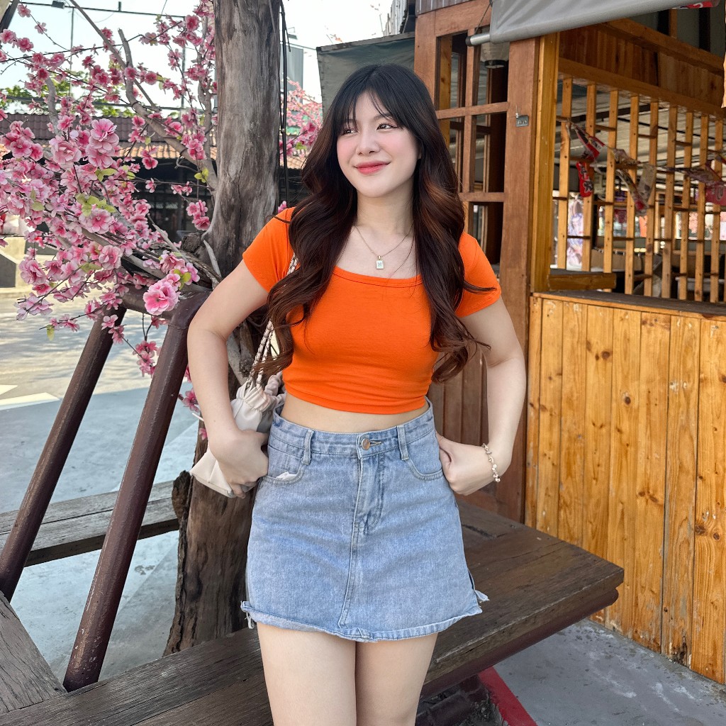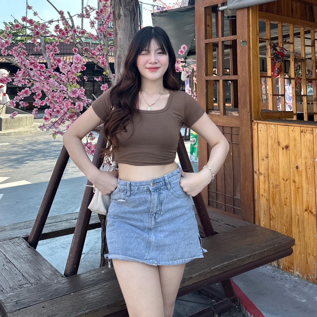 "เสื้อครอปเบสิคลุค ทรงคอเหลี่ยม ผ้าเรย่อนยืดเยอะ 🌸 สาวอวบใส่ได้น้า ผ้าเย็นใส่สบาย ใส่แล้วพรางหุ่นม้าก รุ่น นิตยารุ่น 🌂นิตยา