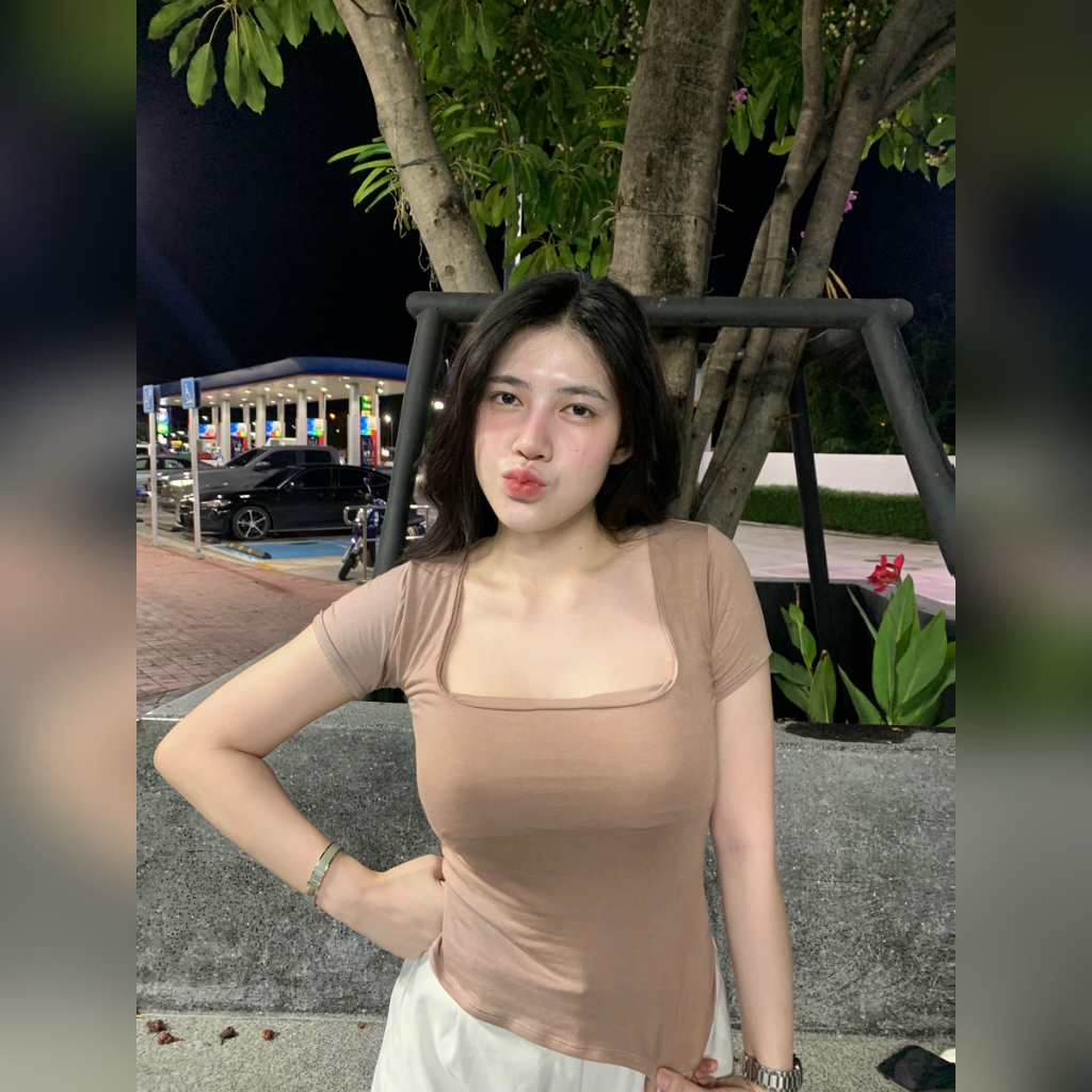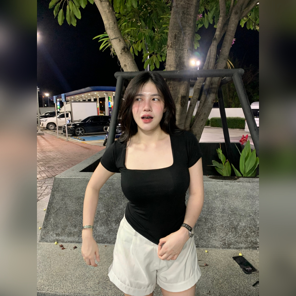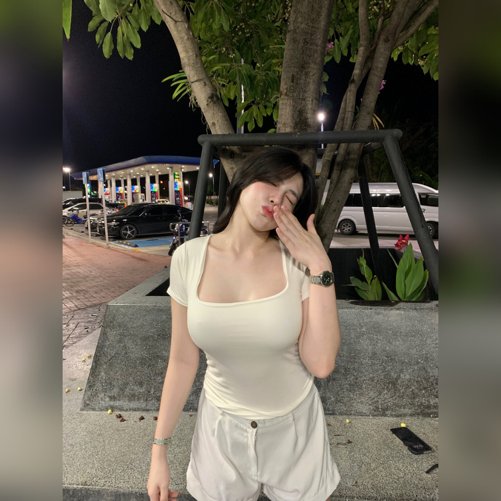 "เสื้อคอเหลี่ยม ครอปคอเหลี่ยม ผ้า2ชั้น 🐇 ผ้าเรย่อน นิ่มใส่บาย ยืดเยอะม้าก สาวอกใหญ่ใส่ได้ เรียบหรูดูแพง รุ่น 287 เหลี่ยมสั้นรุ่น 🌂เหลี่ยมสั้น