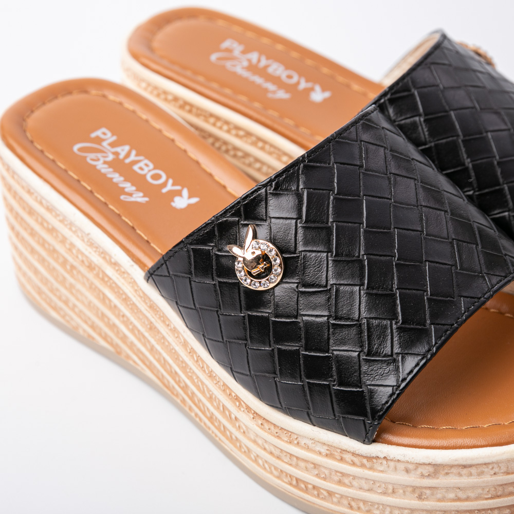 Xăng đan Playboy Xăng đan da thật chính hãng cho nữ Xăng đan thiết kế ST-HS233C095 màn hình cảm ứng màu tương phản với 2 màu trắng và đen.