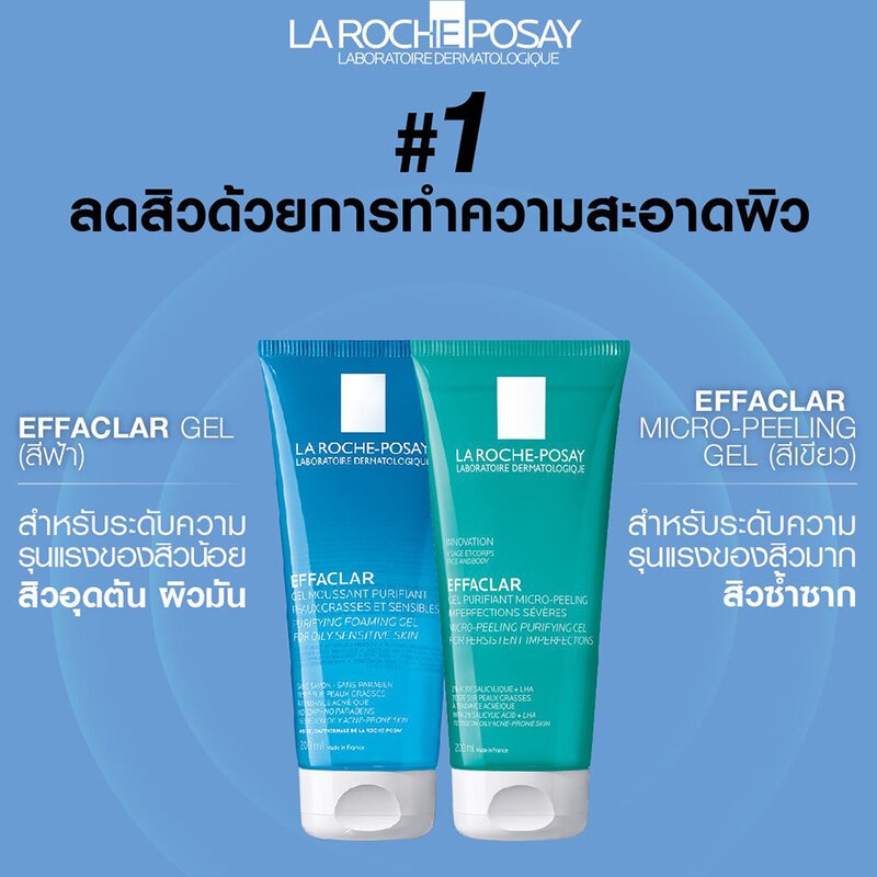 Cr: Facebook.com/LaRochePosayThailand• La Roche Posay Effaclar Purifying Foaming Gel 50ml คลีนเซอร์สำหรับผิวที่มีแนวโน้มเป็นสิวง่าย ทำความสะอาดผิวมันไม่ทำให้ผิวแห้งกร้าน ส่วนผสมที่คัดสรรมาเป็นอย่างดีของสารทำความสะอาดที่อ่อนโยนต่อผิว ช่วยขจัดสิ่งสกปรก ลดความมันส่วนเกิน เพื่อผิวหน้าแลดูสะอาด กระจ่างใส