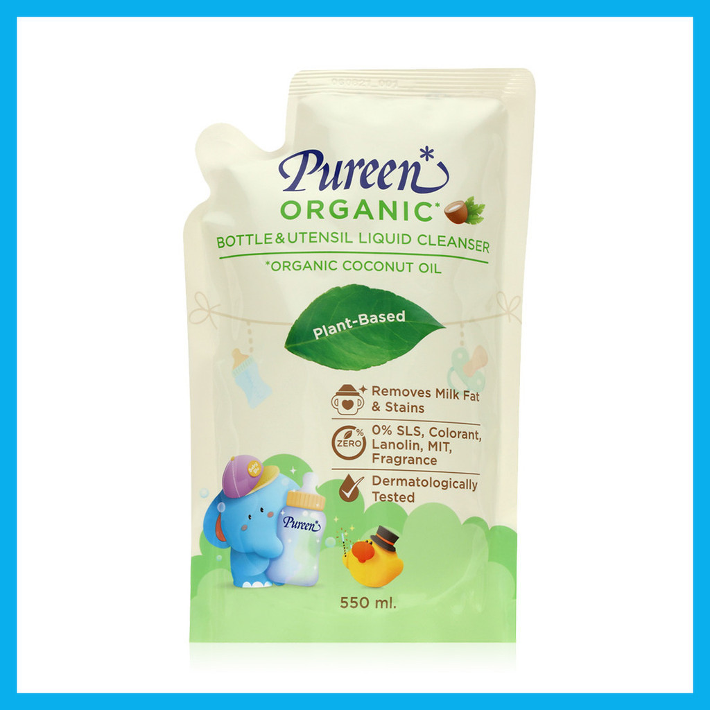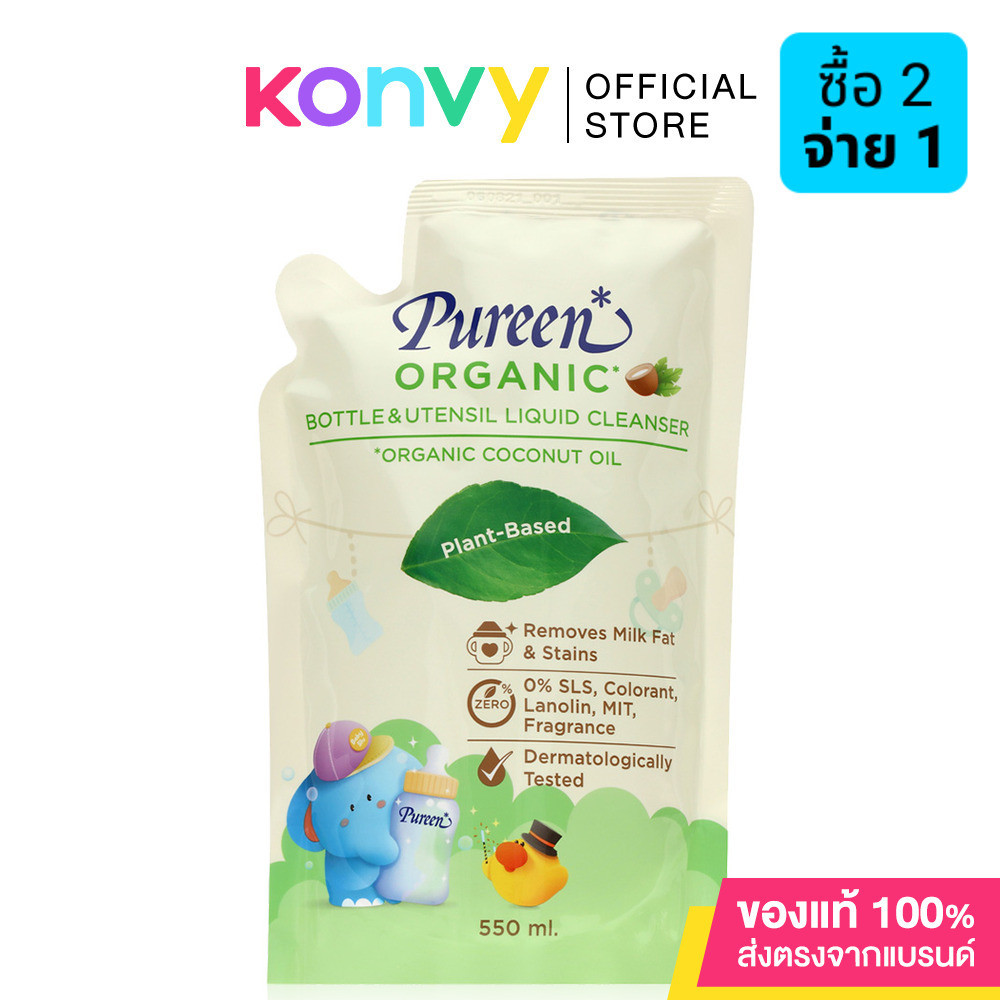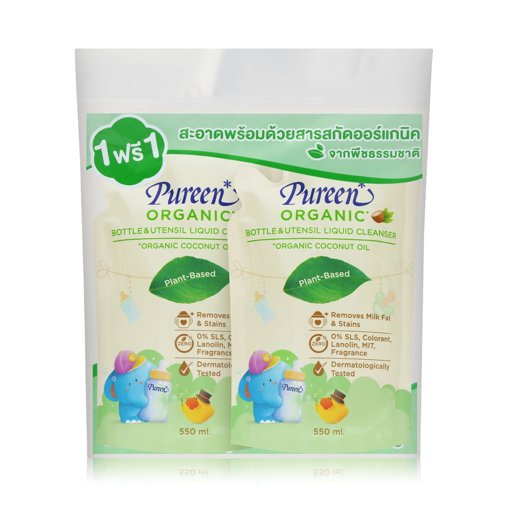 Pureen Organic Bottle&Utensil Liquid Cleanser Refill 550ml น้ำยาล้างขวดนมสูตรออร์แกนิค ประกอบด้วยออร์แกนิคโคโค่นัทออยล์ที่ได้รับการรับรองโดย USDA ผ่านการทดสอบว่าไม่ระคายเคือง (Dermatologically Tested)• ออร์แกนิคโคโค่นัทออยล์ (USDA)