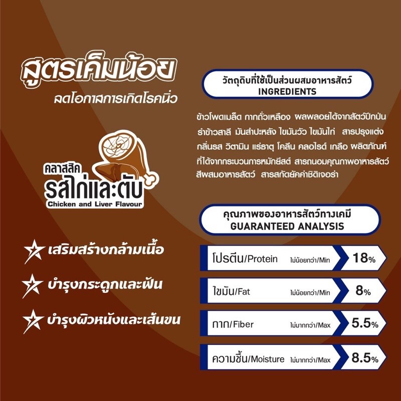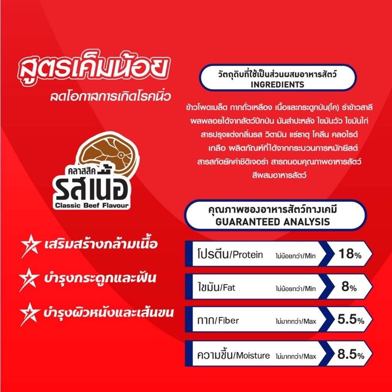 สำหรับสุนัขทุกสายพันธุ์ อายุตั้งแต่ 1 ปีขึ้นไป ได้รับการควบคุมคุณค่าทางโภชนาการตามมาตราฐาน AFFCO