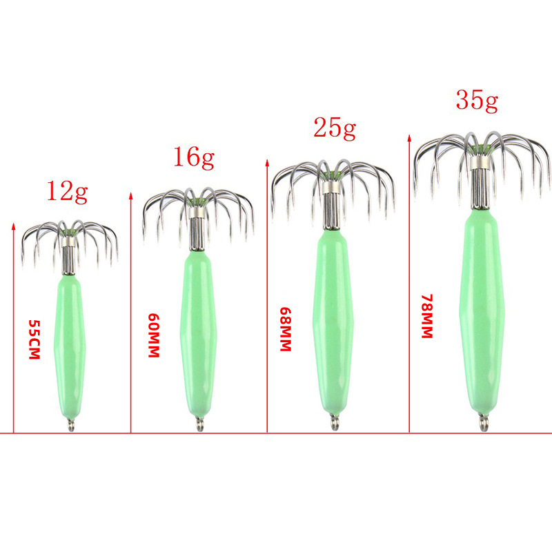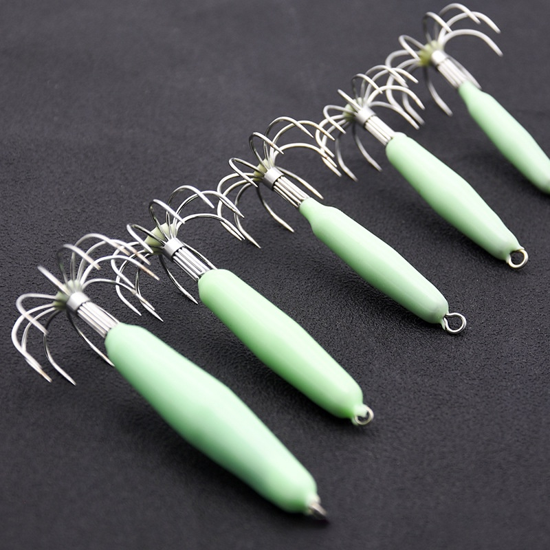3. ตัวตะขอจิ๊กปลาหมึกเรืองแสงทำจากวัสดุพีวีซีและสีเรืองแสงสามารถเรืองแสงเพื่อดึงดูดปลาหมึกได้มากขึ้นในที่มืด