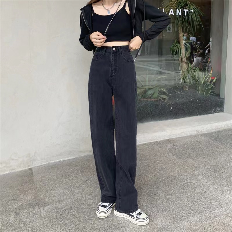 S-3XL👖Quần bò cạp cao quần bò ống rộng cổ điển phong cách Hàn Quốc quần dài đẹp sang trọng