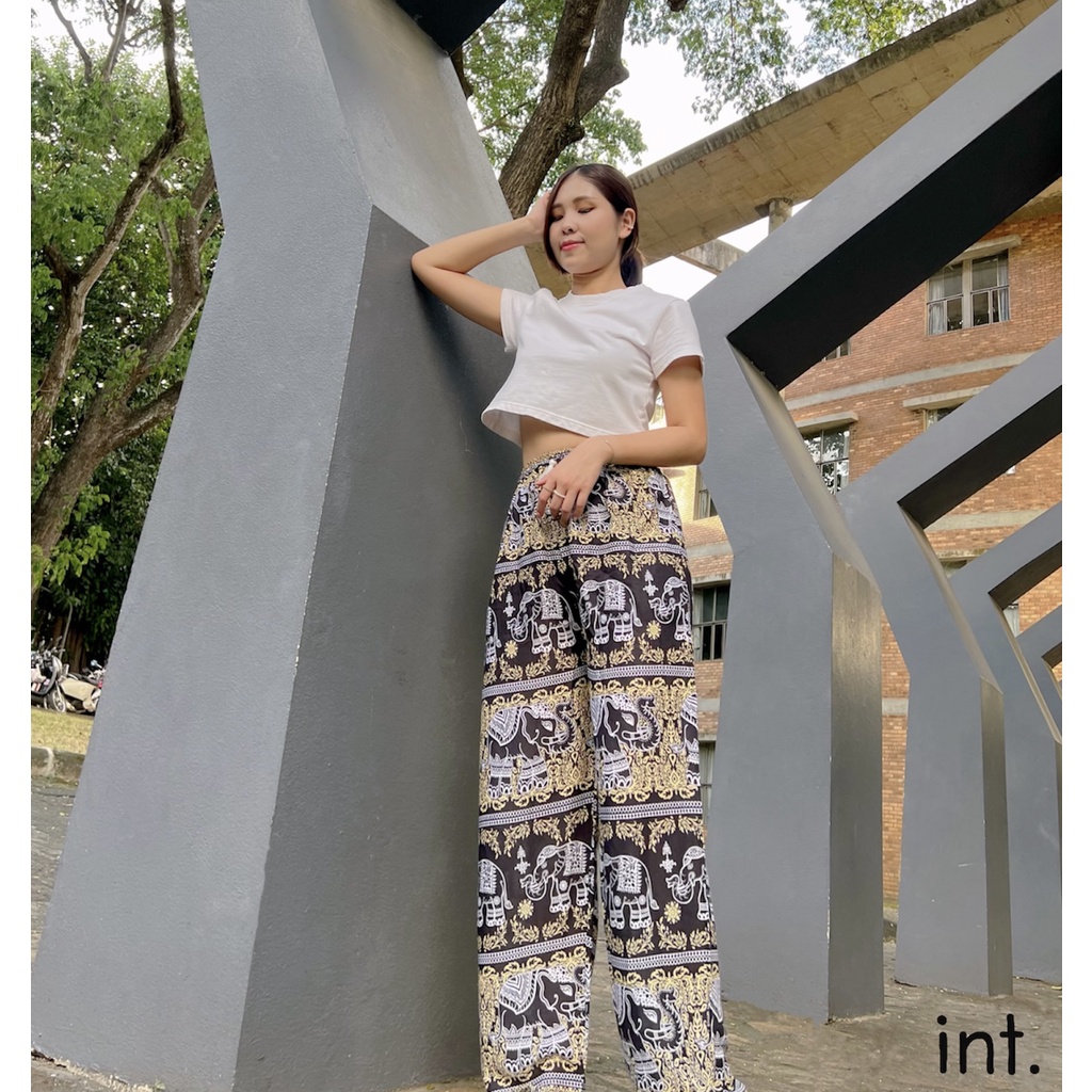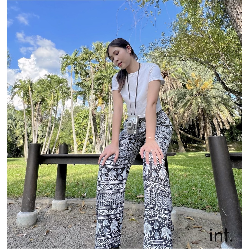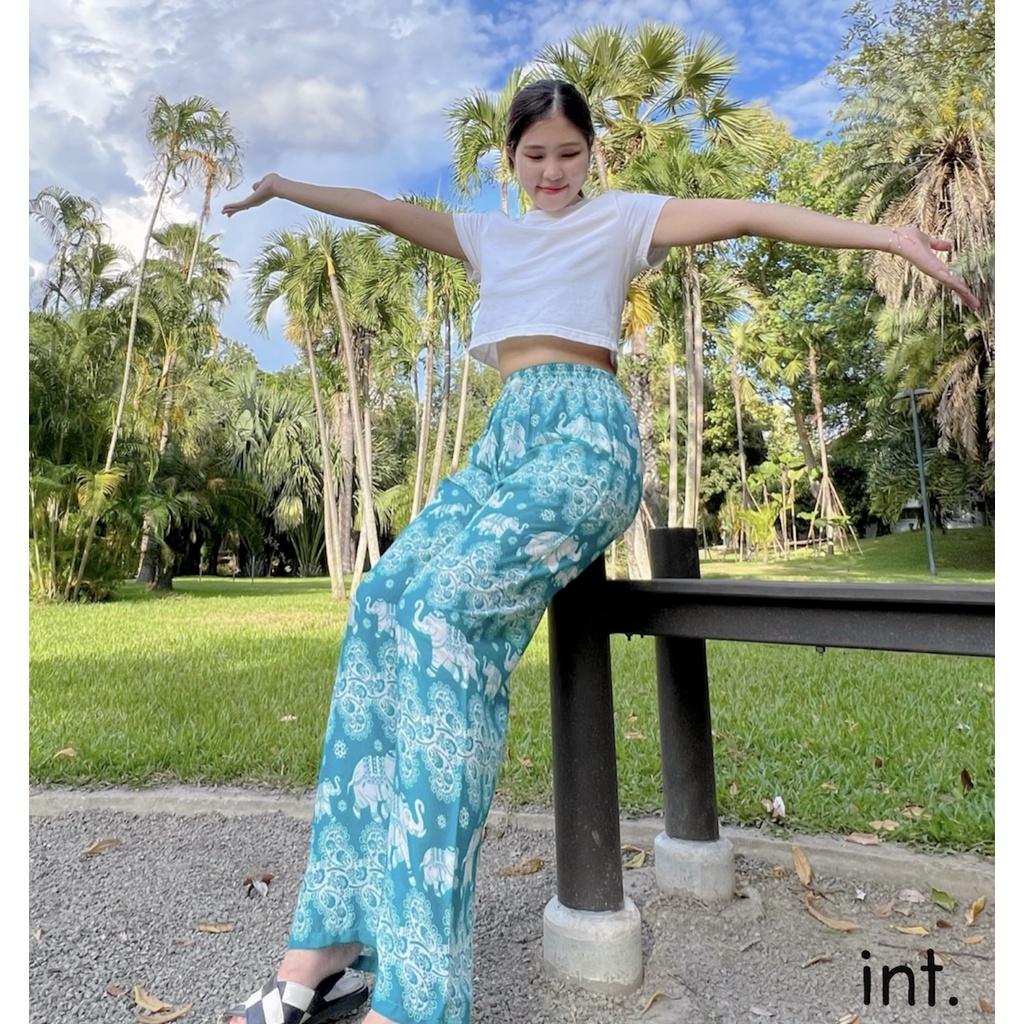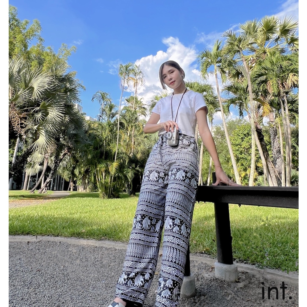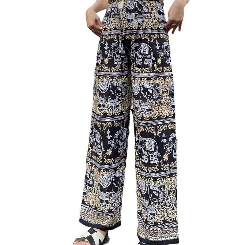 กางเกงขายาวลายช้าง ผ้าสปัน ทรงกระบอกใหญ่ ขาตรง เนื้อผ้าเกรดดี ฝีมืองานเย็บไทย 100% มาตรฐานการตัดเย็บไทยที่สุดของคุณภาพ รายละเอียดการตัดเย็บ เเละรูปทรง คำนึกถึงความสะดวกสะบายในการสวมใส่ พร้อมรูปเเบบอันทรงสมัยตามเเบบกางเกงยอดนิยม
