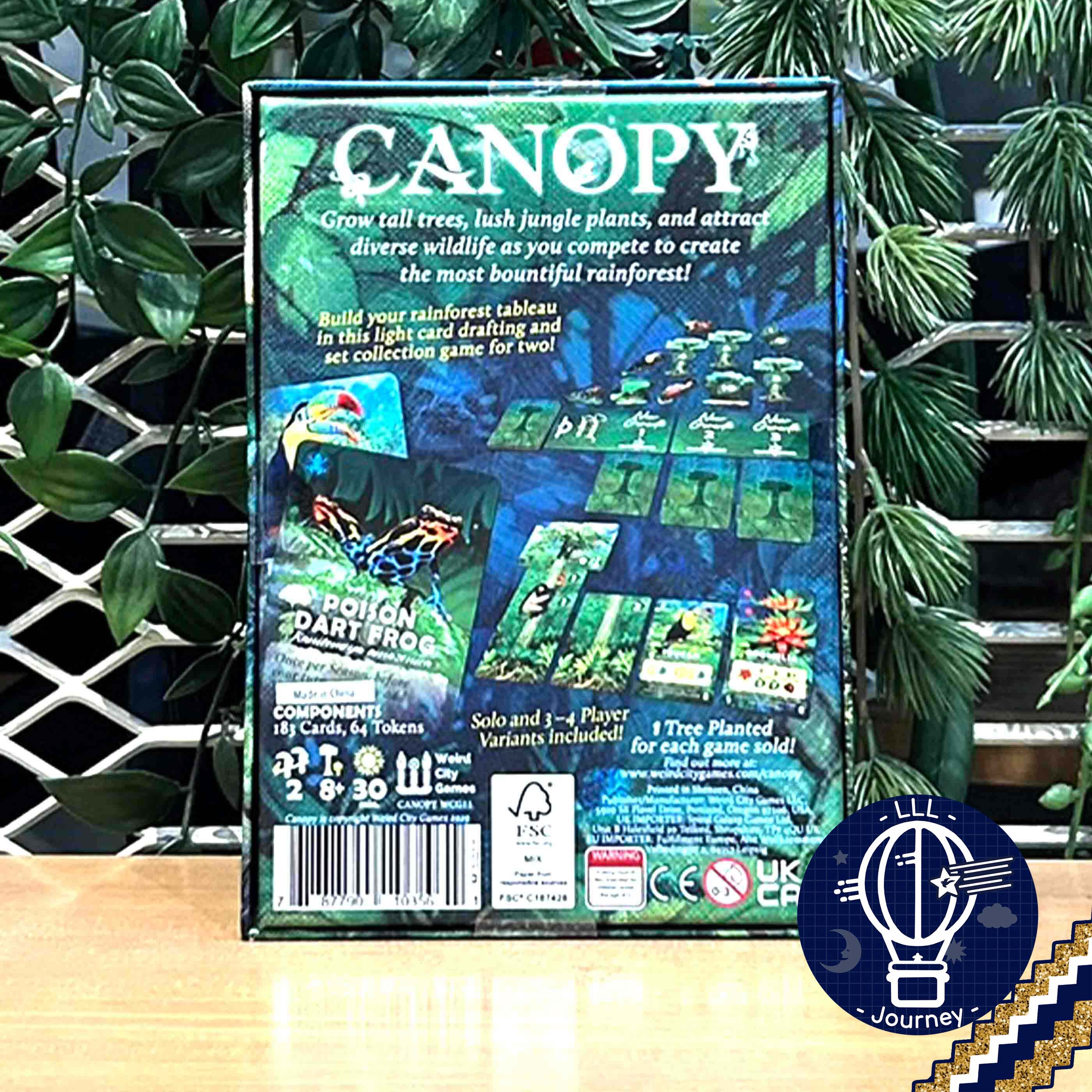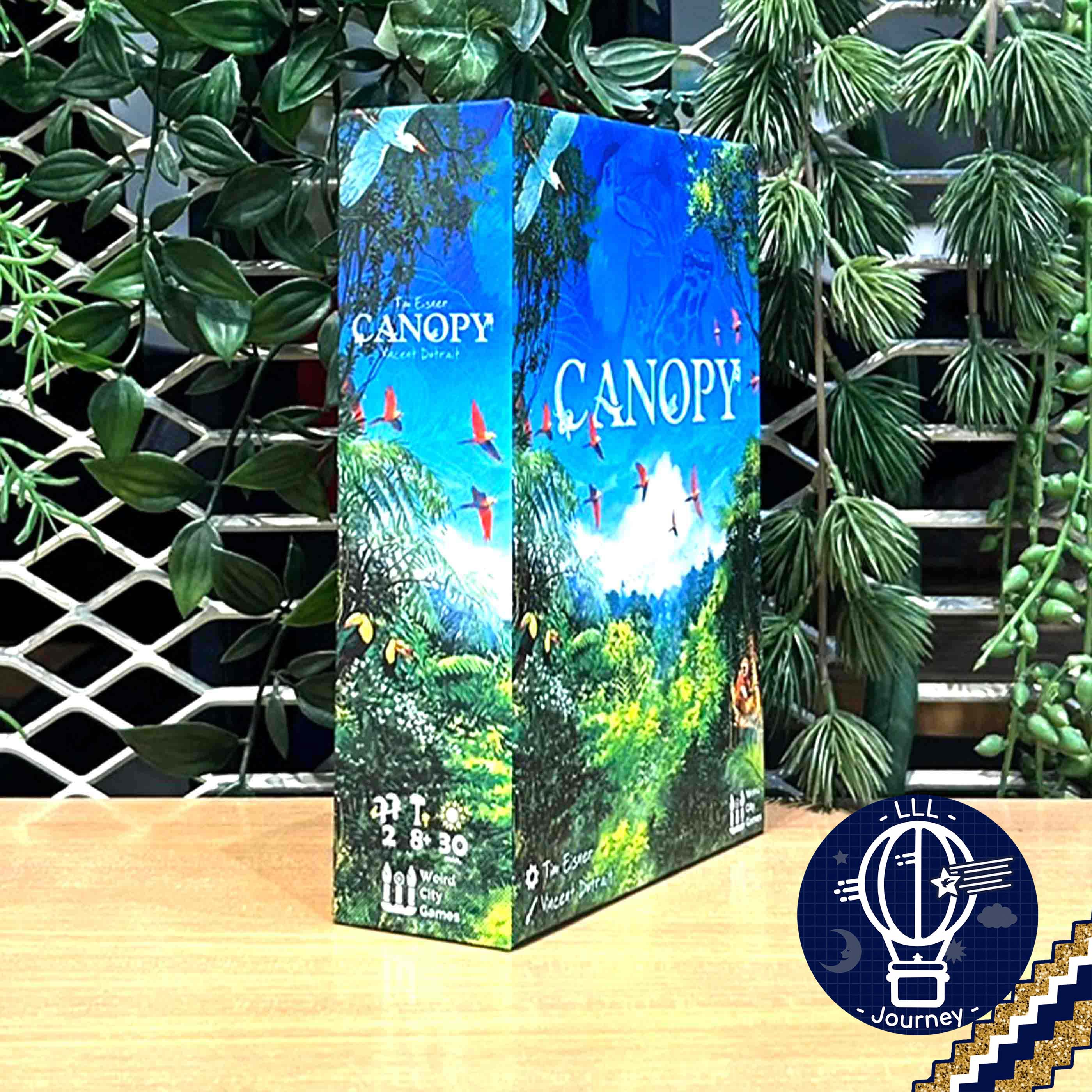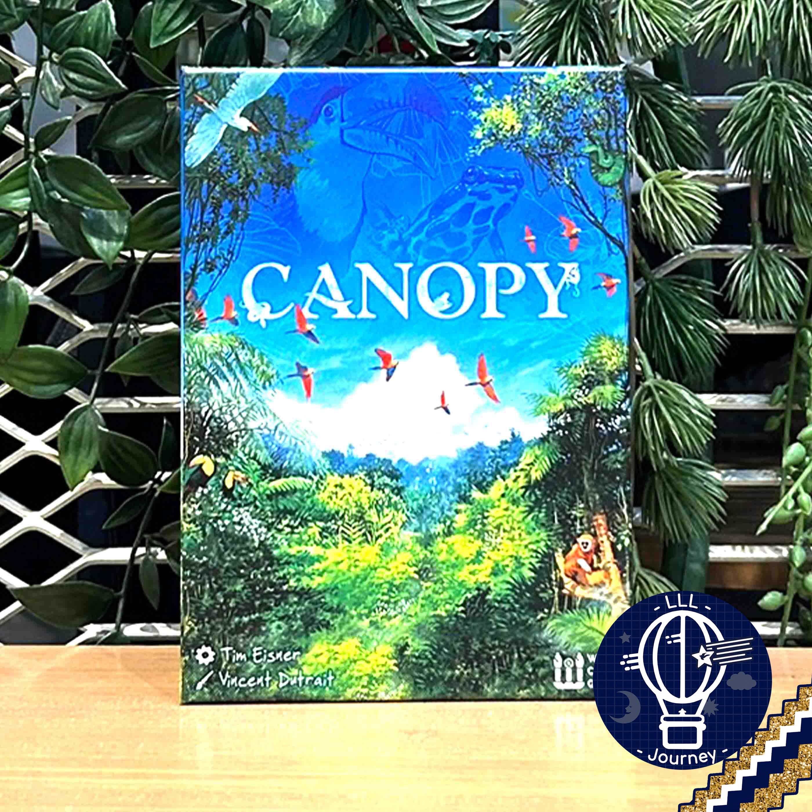 Canopy is a game in which two players compete to grow the most bountiful rainforest. The jungle ecosystem is full of symbiosis and mutualism, and players must grow tall trees and lush jungle plants to attract the most diverse wildlife. By carefully selecting what grows in your forest, you can create the ideal balance of flora and fauna and develop a thriving rainforest.