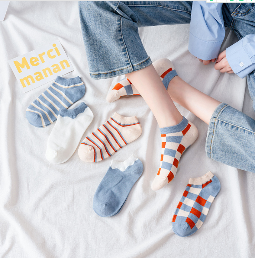 ถุงเท้าข้อสั้น ถุงเท้าแฟชั่น มี 9 ลายให้เลือกถุงเท้าแฟชั่น ผลิตจากผ้าคอตตอนแท้