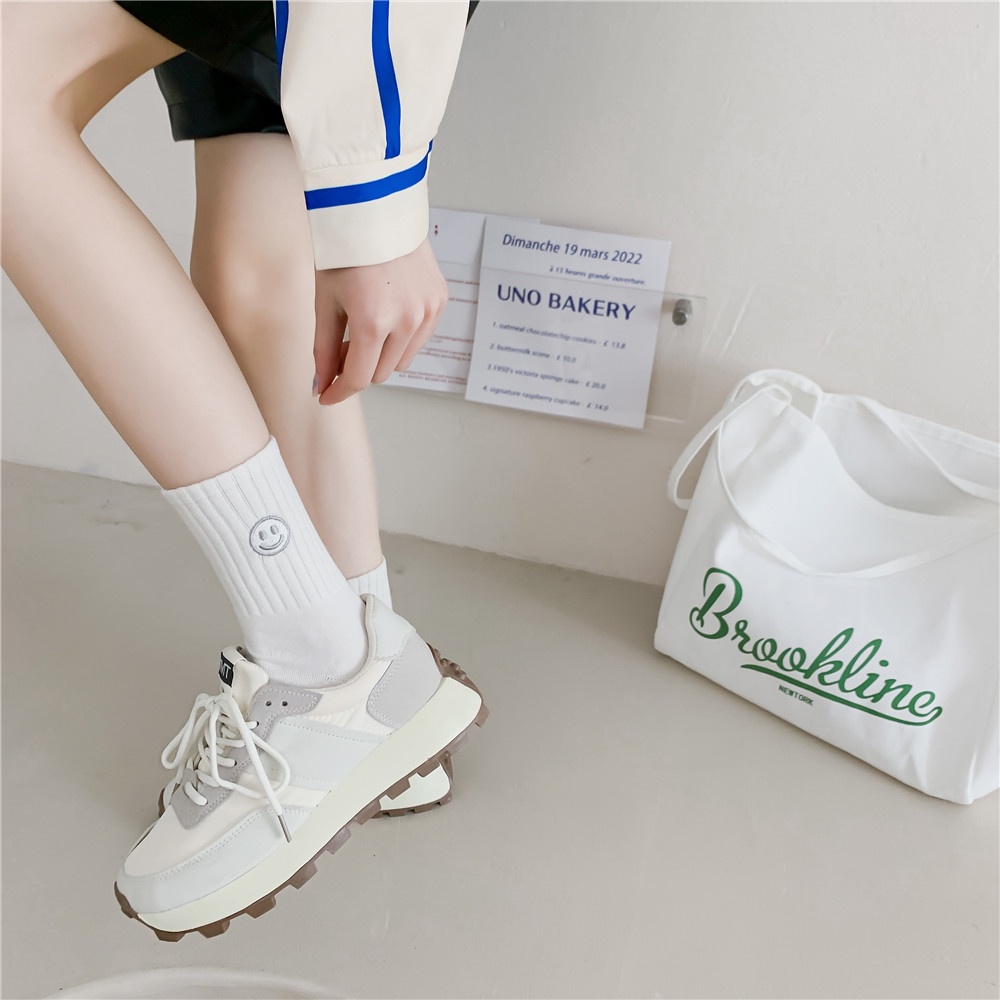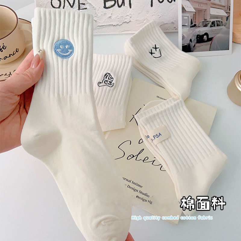 Vận chuyển từ Thái Lan!! Tất lửng cổ điển phong cách Nhật Bản Tất thời trang thoải mái màu trơn bằng cotton A05