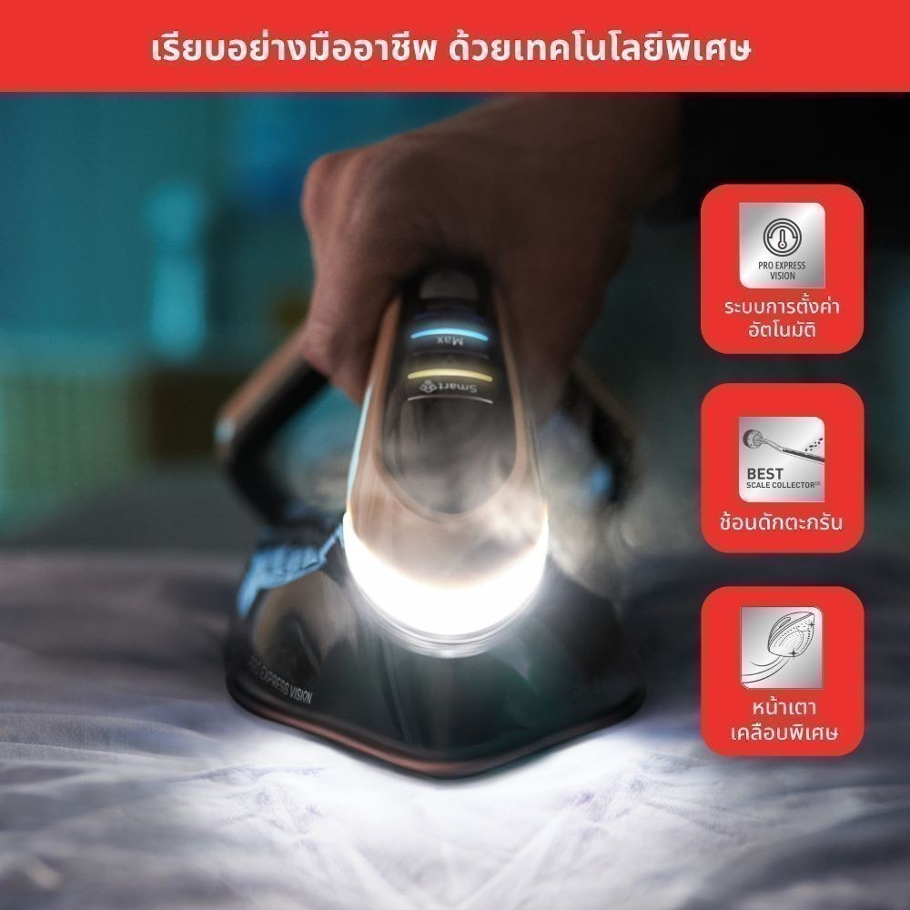 เตารีดแรงดันไอน้ำพลังสูง Pro Express Vision แรงดัน 9 บาร์ รุ่น GV9820ผ้ากองโตแค่ไหนก็ช่วยให้การรีดผ้า เรียบ เร็วได้อย่างมืออาชีพ ด้วยแรงดันไอน้ำสูงถึง 9 บาร์ มาพร้อม Smart LED Vision ช่วยส่องรอยยับแม้ในที่มืด ช้อนดักตะกรัน Calc collector ป้องกันตะกรันอุดรูหน้าเตา คงประสิทธิภาพไอน้ำได้อย่างยาวนาน ไม่ว่าเสื้อผ้าจะหลากหลายขนาดไหนก็เอาอยู่ Tefal Pro Express vision เตารีดไอน้ำแยกหม้อต้มที่ผลิตไอน้ำแรงดันสูง เหมาะกับผ้าทุกชนิด"