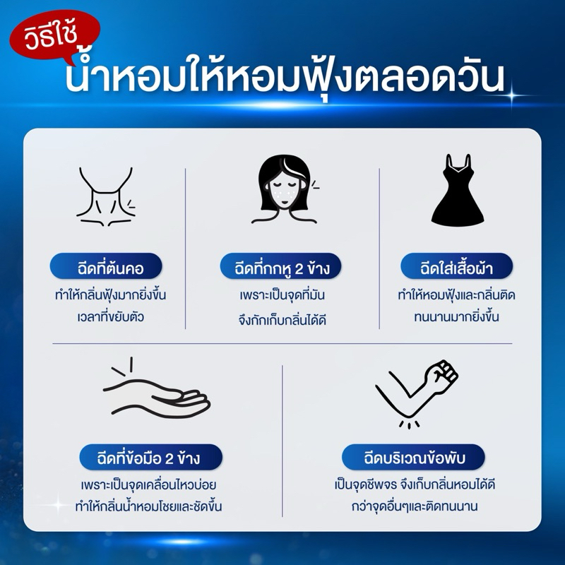 วิธีฉีดน้ำหอมให้ติดทนนานฉีดบริเวณชีพจร เช่น ต้นคอ ข้อพับแขน และเสื้อผ้า ในระยะห่างของการฉีด 20 ซม.
