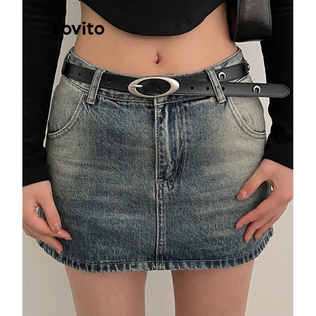 Lovito Thắt lưng da với quần Jean Váy nữ màu đen l50ad156 (Cà Phê/Lạc Đà/Màu đen)