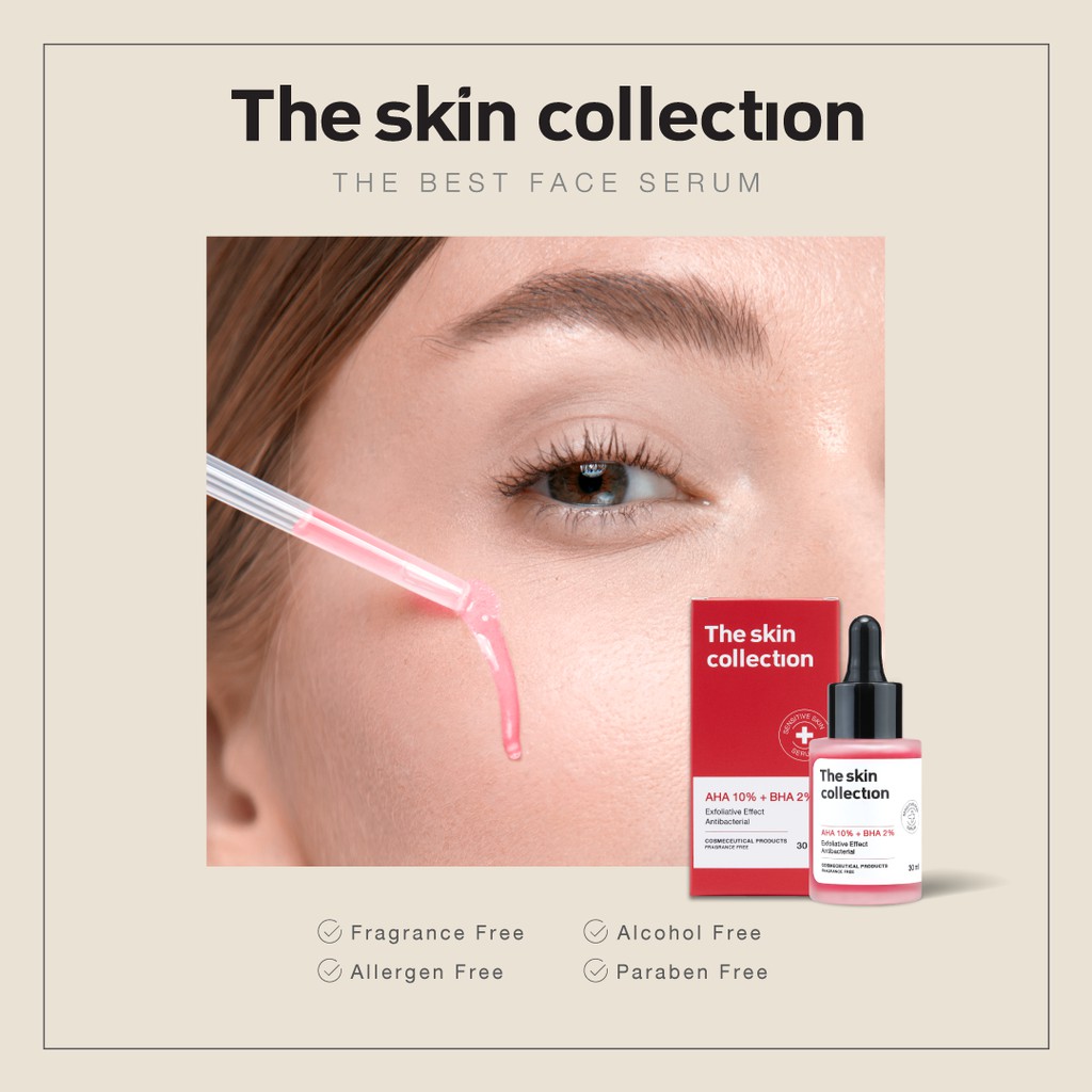 The Skin Collection Serum AHA10% + BHA2%เซรั่มที่มีฤทธิ์กระตุ้นให้ผิวหนังมีการผลัดเซลล์ โดยลอกเซลล์ผิวเก่าออกและสร้างเซลล์ผิวใหม่ขึ้นมาแทนที่ ผลัดเซลล์ผิวที่เสียออกมา เพื่อให้ผิวดูกระจ่างใสมากขึ้น ช่วยแก้ปัญหาเรื่องสิวอุดตัน และทุกปัญหาสิว