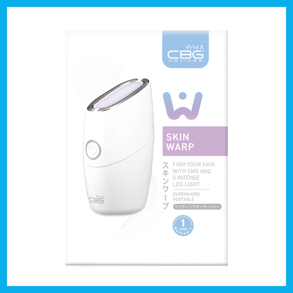 CBG Devices Skin Warp 85g เครื่องยกกระชับผิวหน้าด้วยการสั่นสะเทือนและการกระตุ้นกล้ามเนื้อให้บีบตัวด้วยกระแสไฟฟ้าอ่อนๆ EMS ตัวเครื่องจะมี Function ด้วยกัน 4 โหมด ทุกโหมดจะปล่อย EMS และ การสั่นสะเทือน แต่ละโหมดจะปล่อยแสง LED ที่ความยาวคลื่นแสงต่างกัน สีฟ้าช่วยลดแบคทีเรียที่ก่อให้เกิดสิว สีเขียวช่วยปลอบประโลมผิวทำให้ผิวผ่อนคลาย และ สีแดงช่วยกระตุ้นการสร้างคอลลาเจนทำให้ผิวเต่งตึงแบบ X2• ยกกระชับผิวหน้า