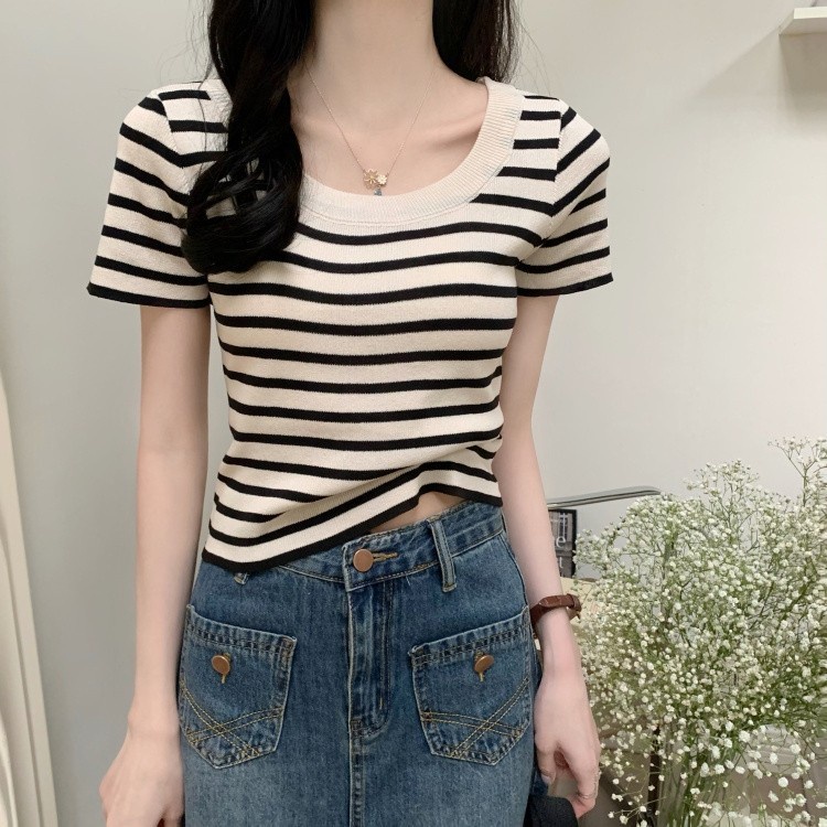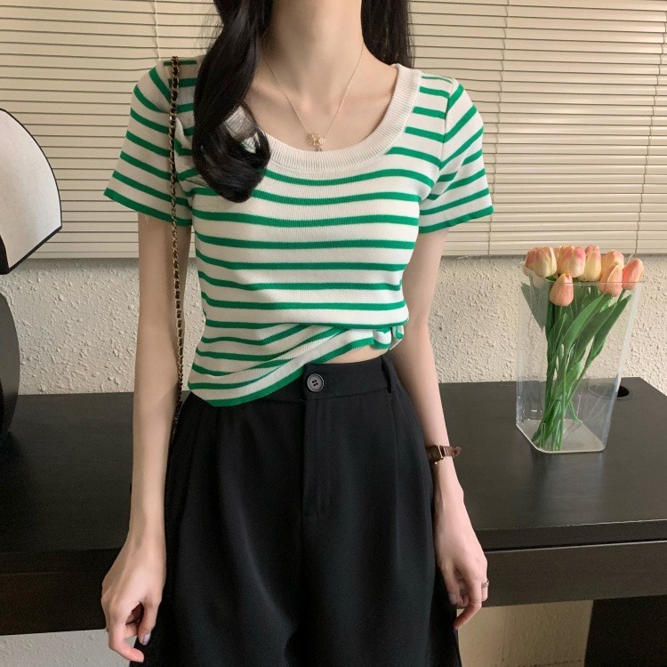 Expogarment áo hở eo áo hở eo vải xẻ ngắn tay vải cotton mỏng co giãn (Tất cả có sẵn 17 màu) 003