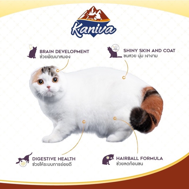 ด้วนสโลแกน Craftily Selected คานิว่าได้คัดสรรวัตถุดิบทุกชนิดเพื่อให้แมวของคุณ " ขนสวย เงางาม สุขภาพดี "