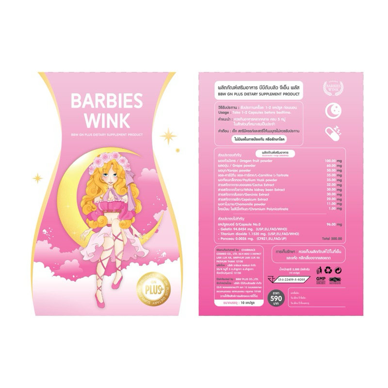 BBW GN PLUS DIETARY SUPPLEMENTอาหารเสริมสูตรคุณวาริส เผาผลาญ ขับถ่าย 1กล่อง 10แคปซูล