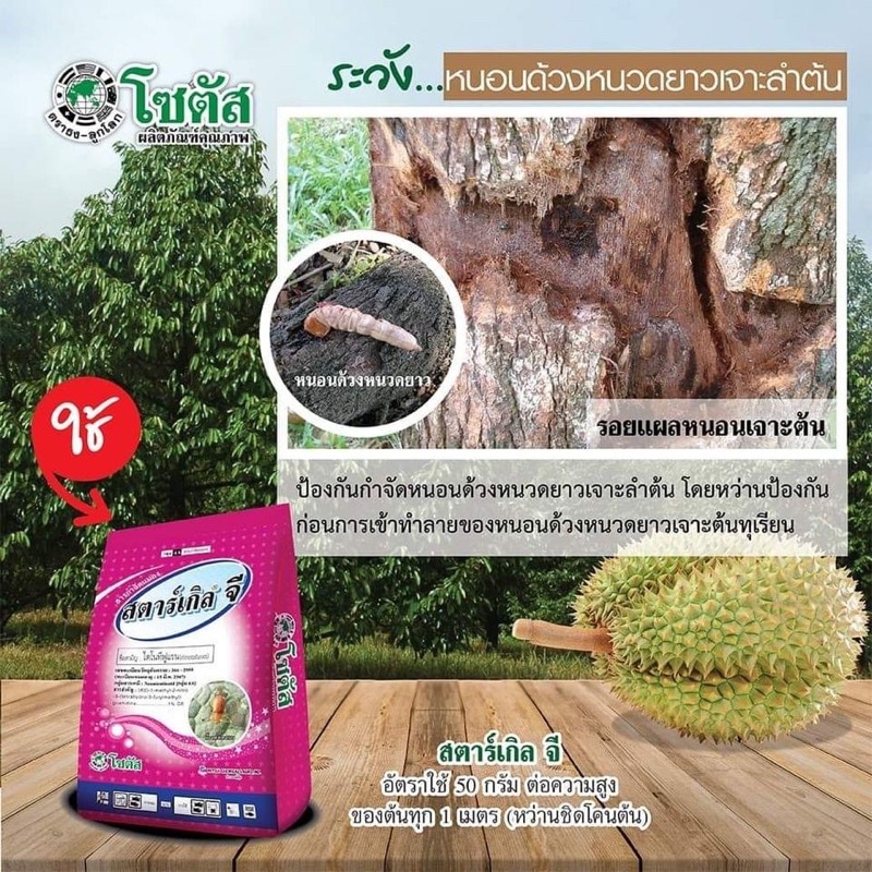 - สารกำจัดแมลงชนิดดูดซึม สำหรับรองก้นหลุมหรือโรยรอบโคนต้นหลังปลูก จาก บริษัทมิตซุย เคมิคัล ประเทศญี่ปุ่น