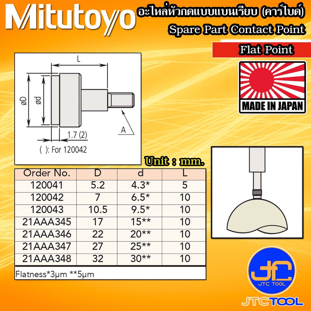 อะไหล่หัวกดแบบแบนเรียบ (คาร์ไบด์) - Contact Point Flat Point Carbide[Brand: Mitutoyo]
