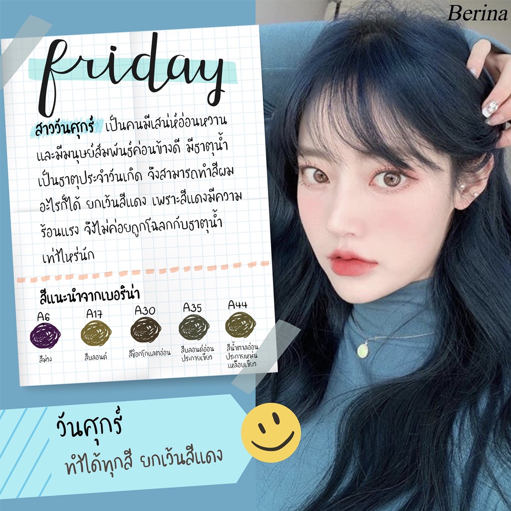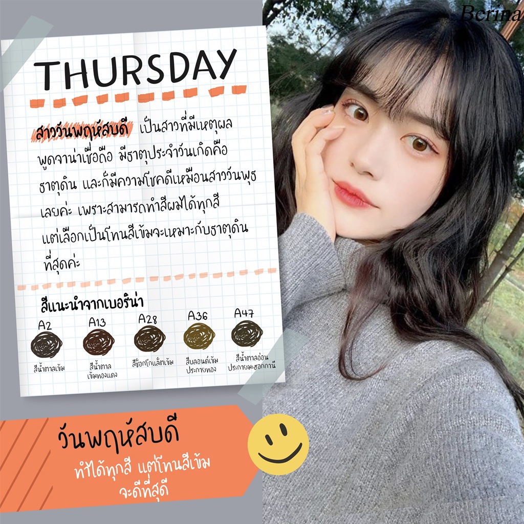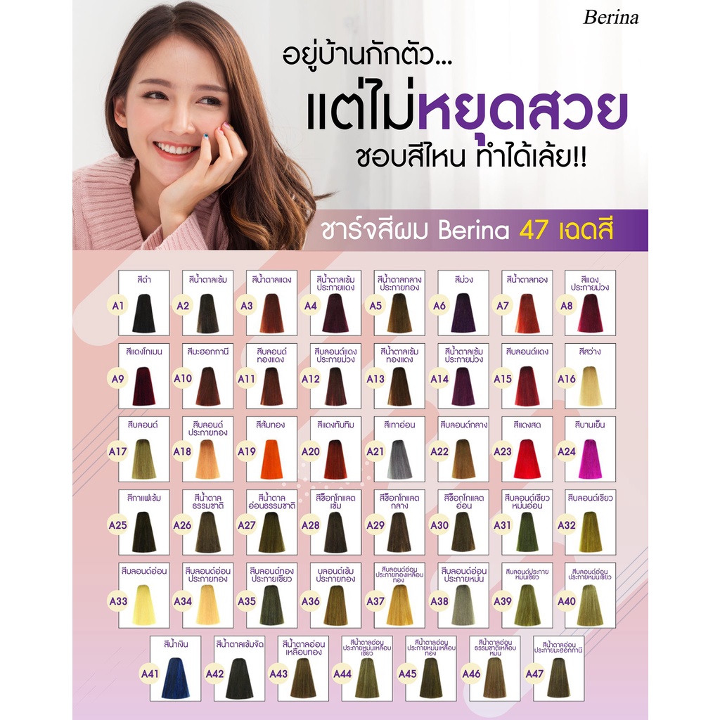 💕 เบอริน่า ครีมเปลี่ยนสีผม สีย้อมผม ปิดผมขาว ปิดหงอก สีแฟชั่น Berina Hair Color🌻 รายละเอียด